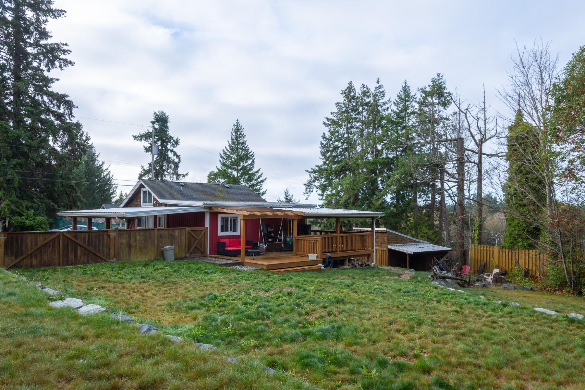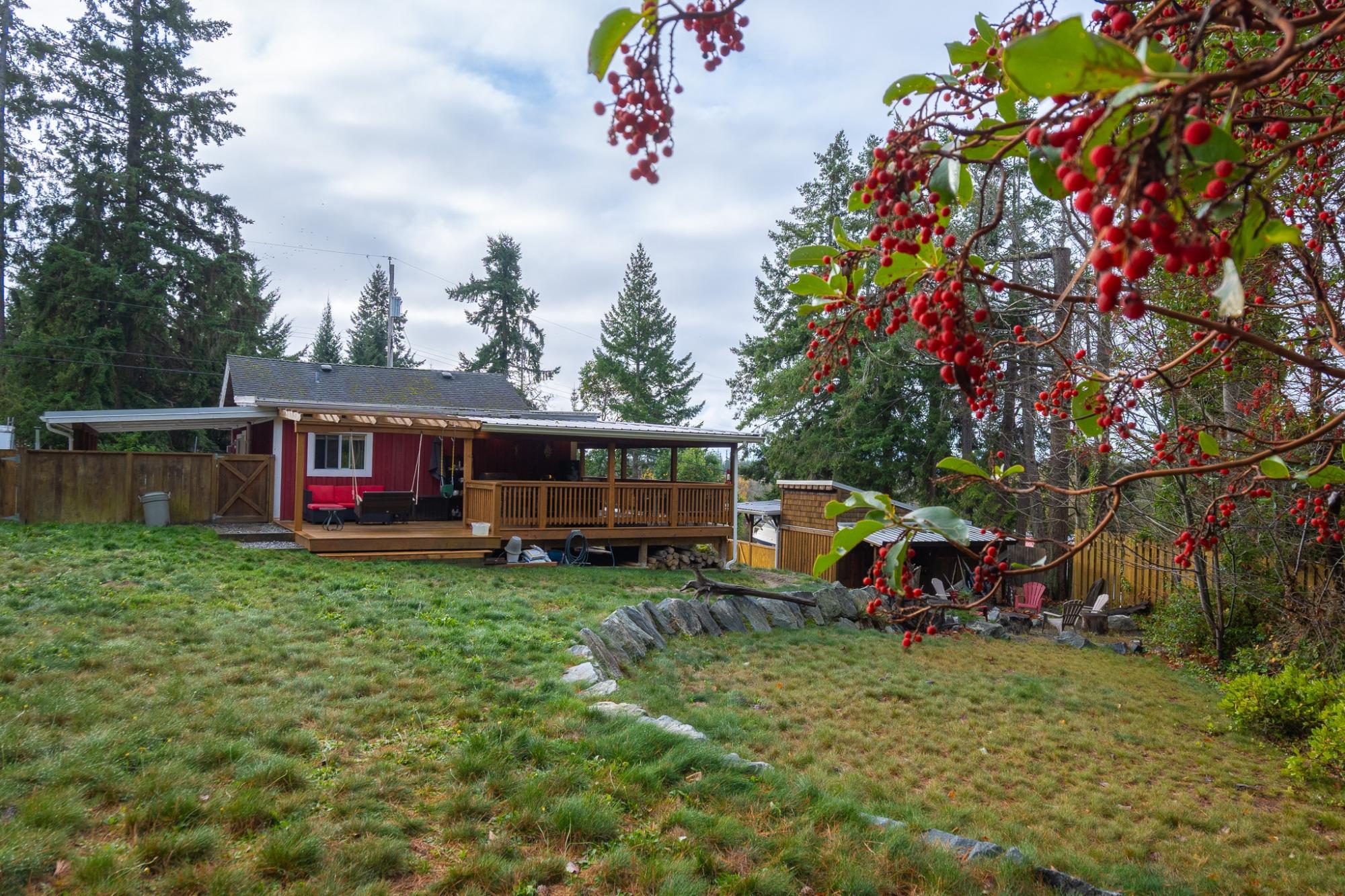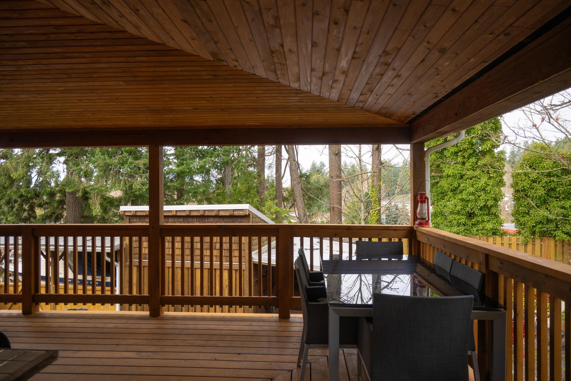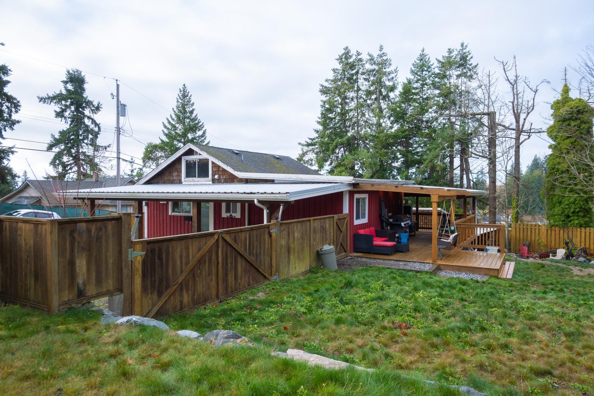 HAVE IT ALL! This beautifully updated character rancher with huge covered deck sits on an expansive tiered lot with shop and ample parking. Character charm throughout with bright country kitchen, granite faced gas fireplace, crown molding and old growth fir floors. The 0.40 acre lot has space for gardens and projects, is fully fenced and has irrigation, fire pit, level parking for boats and RV’s and a wired shop for hobbies and projects. The expansive wrap-around deck extends your living space for year-round indoor/outdoor socializing, complete with natural gas hook-up and including fire table and bbq +! This turn-key single-level home is move-in-ready and just a short stroll from grocer, trails and lakes. There’s so much to love about this charming home, call for your private viewing today.