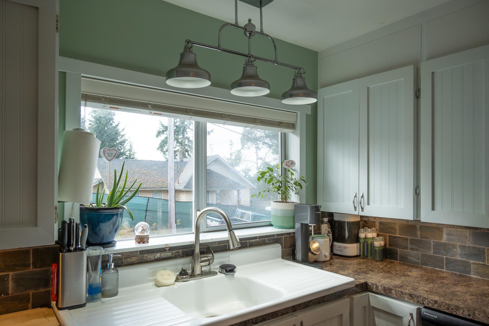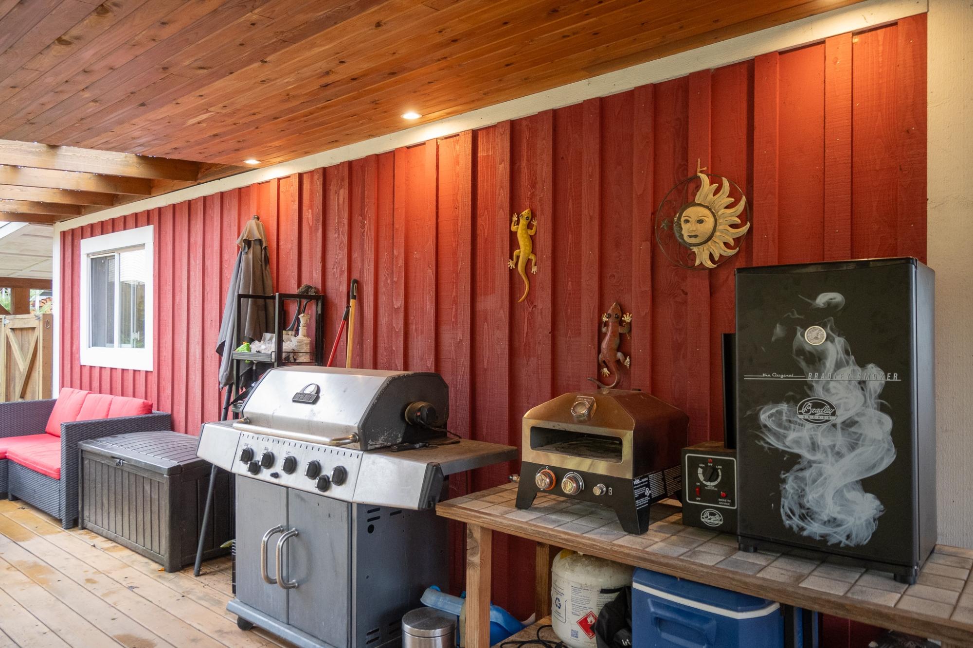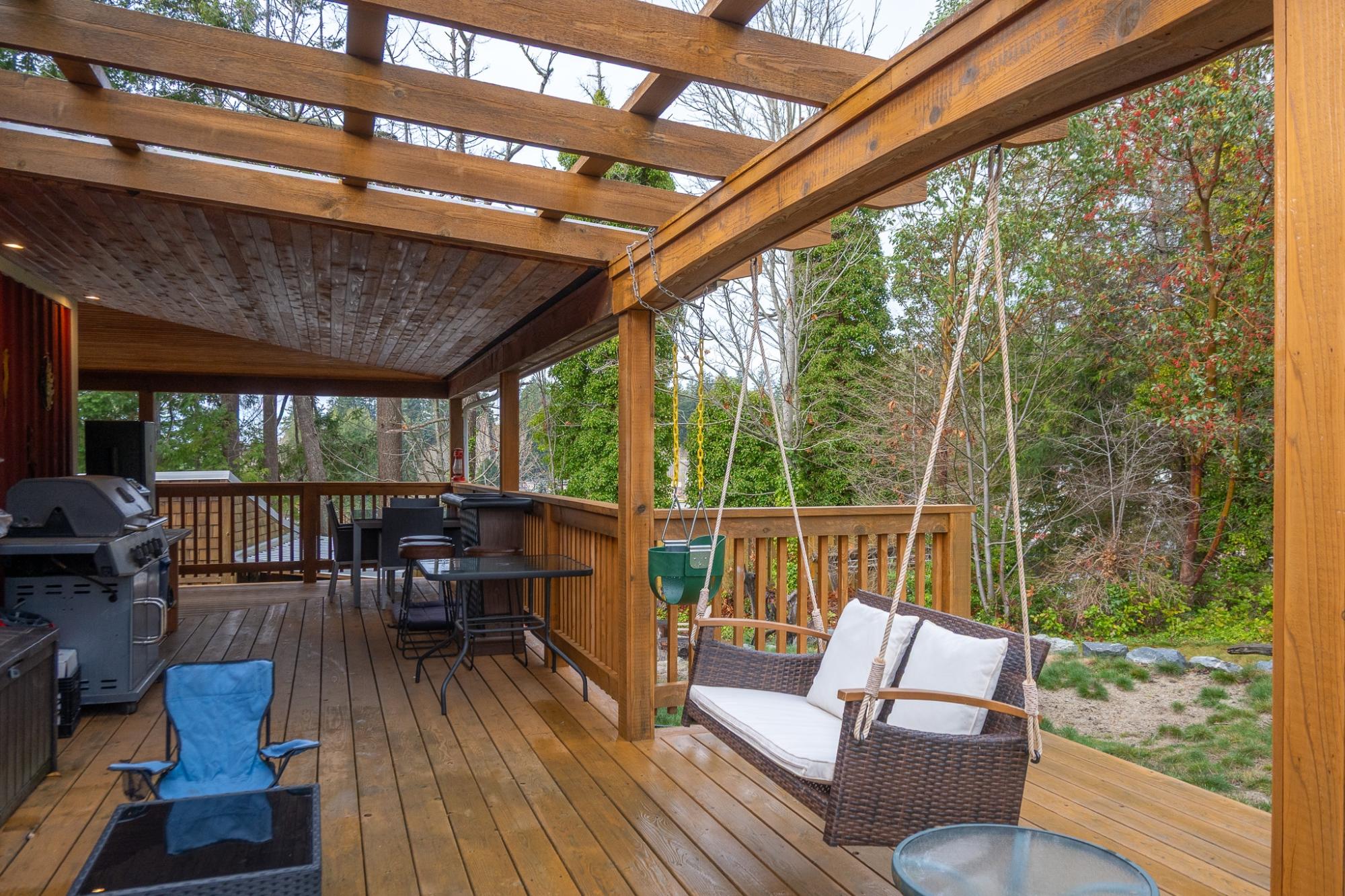 HAVE IT ALL! This beautifully updated character rancher with huge covered deck sits on an expansive tiered lot with shop and ample parking. Character charm throughout with bright country kitchen, granite faced gas fireplace, crown molding and old growth fir floors. The 0.40 acre lot has space for gardens and projects, is fully fenced and has irrigation, fire pit, level parking for boats and RV’s and a wired shop for hobbies and projects. The expansive wrap-around deck extends your living space for year-round indoor/outdoor socializing, complete with natural gas hook-up and including fire table and bbq +! This turn-key single-level home is move-in-ready and just a short stroll from grocer, trails and lakes. There’s so much to love about this charming home, call for your private viewing today.