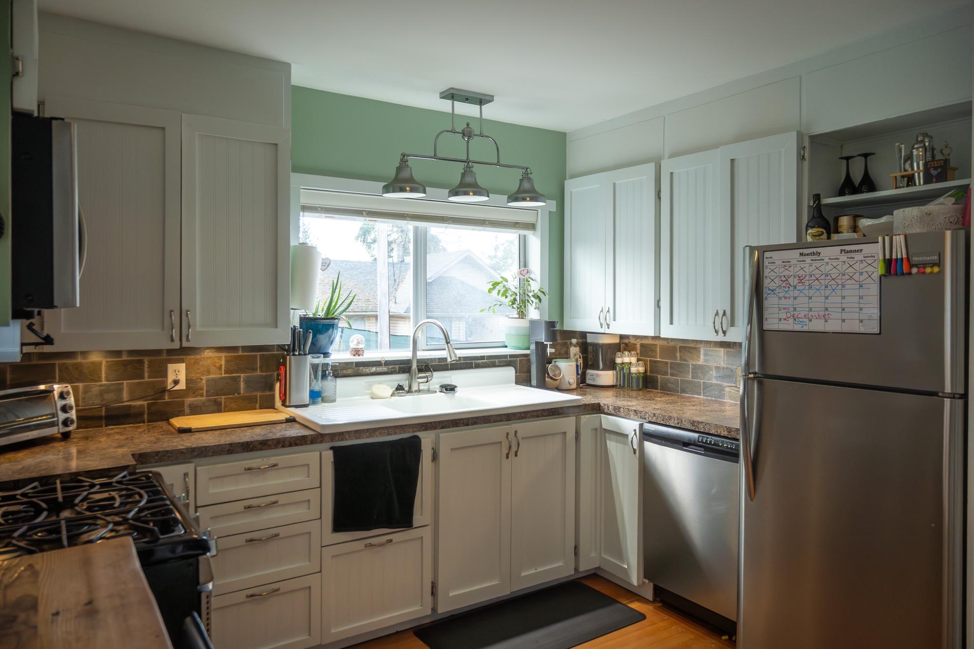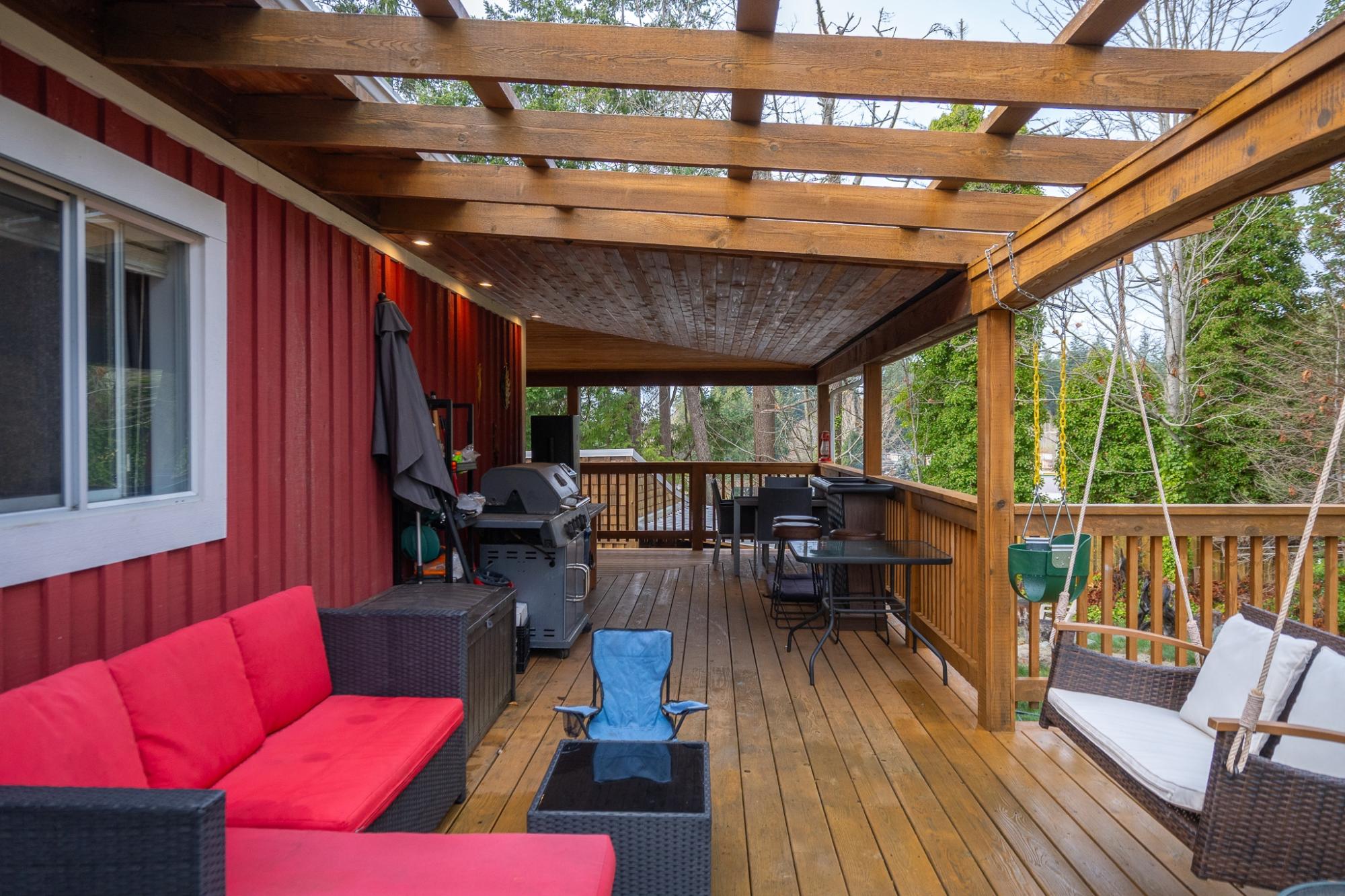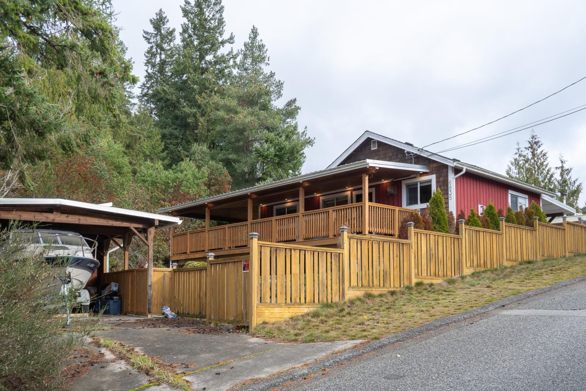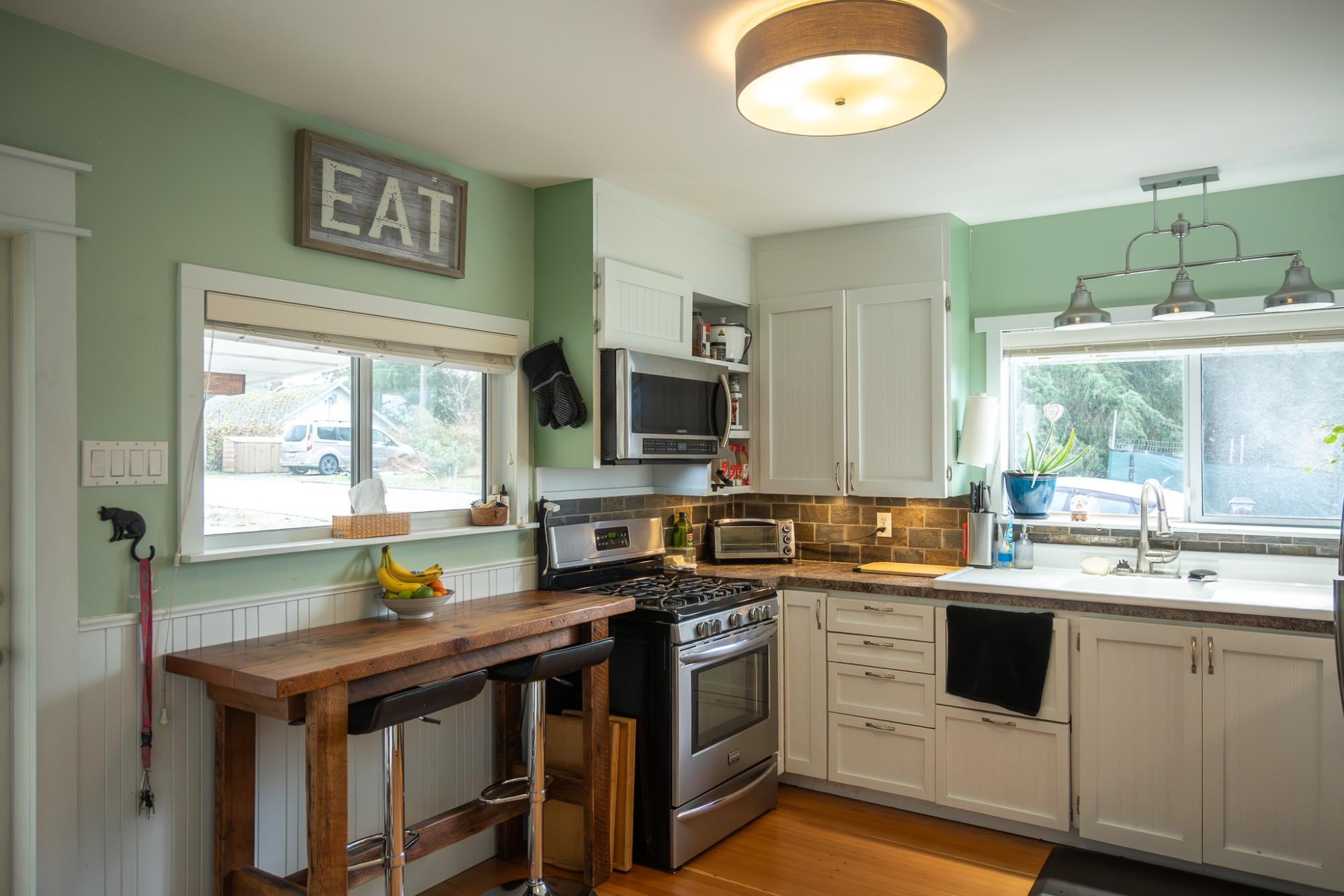 HAVE IT ALL! This beautifully updated character rancher with huge covered deck sits on an expansive tiered lot with shop and ample parking. Character charm throughout with bright country kitchen, granite faced gas fireplace, crown molding and old growth fir floors. The 0.40 acre lot has space for gardens and projects, is fully fenced and has irrigation, fire pit, level parking for boats and RV’s and a wired shop for hobbies and projects. The expansive wrap-around deck extends your living space for year-round indoor/outdoor socializing, complete with natural gas hook-up and including fire table and bbq +! This turn-key single-level home is move-in-ready and just a short stroll from grocer, trails and lakes. There’s so much to love about this charming home, call for your private viewing today.