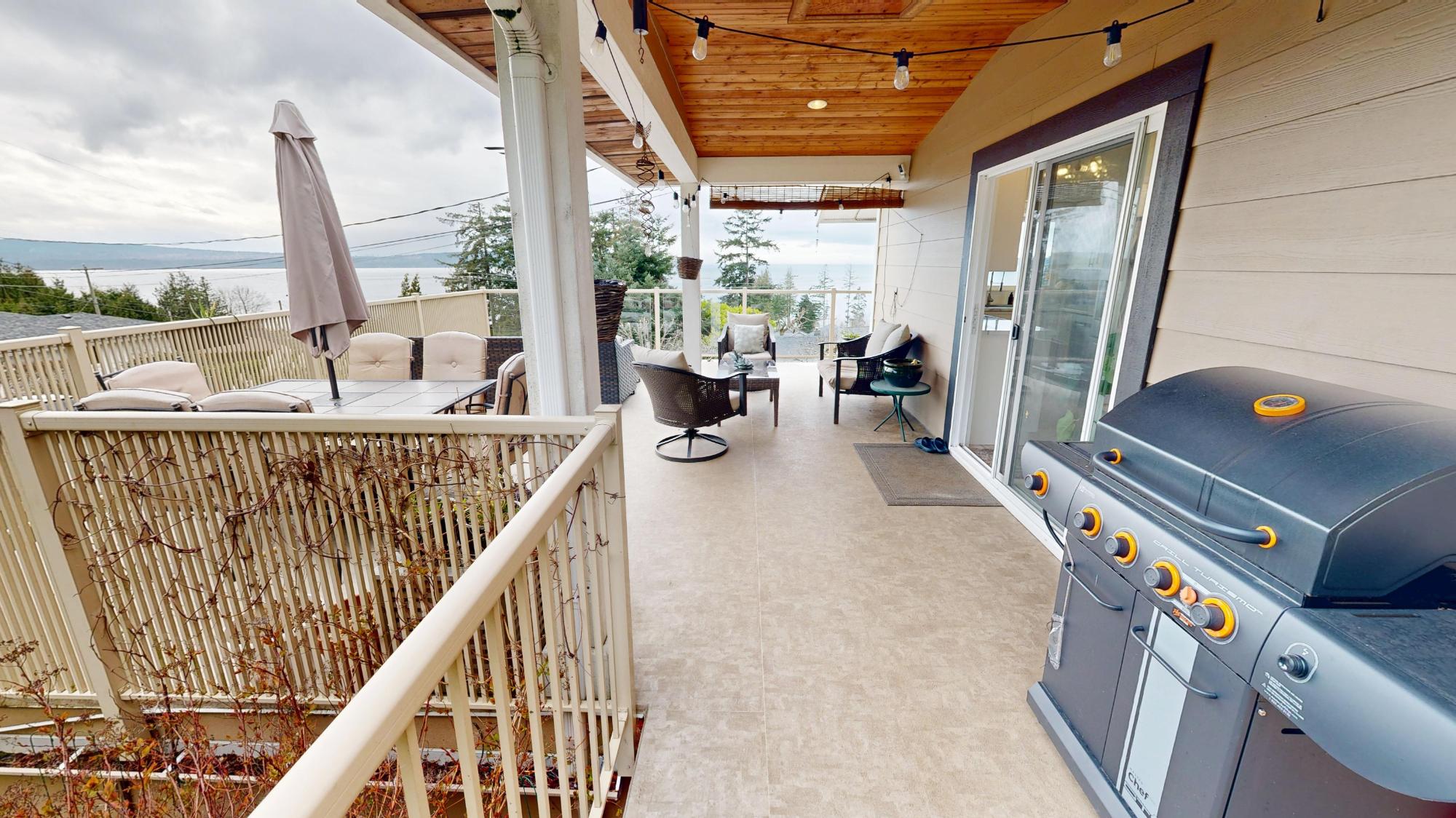 Welcome to your next family home in the heart of Westview. This beautifully maintained 4-bedroom, 3-bathroom home offers expansive, stunning ocean views that can be enjoyed from nearly every room. Large windows fill the space with natural light, creating a warm and inviting atmosphere throughout. Designed with family living in mind, the home features a dedicated office, a spacious rec room, gym area, and a workshop — providing flexible space for work, hobbies, and play. Tasteful finishes and thoughtful details add comfort and style at every turn. Step outside to a large entertaining deck, perfect for summer barbecues, relaxing evenings, and taking in breathtaking sunsets over the water. The fully fenced yard offers privacy and security for kids and pets to enjoy. Set in a fantastic neighbourhood close to amenities, schools, and the waterfront, this home is move-in ready and awaiting its next family to make lasting memories.