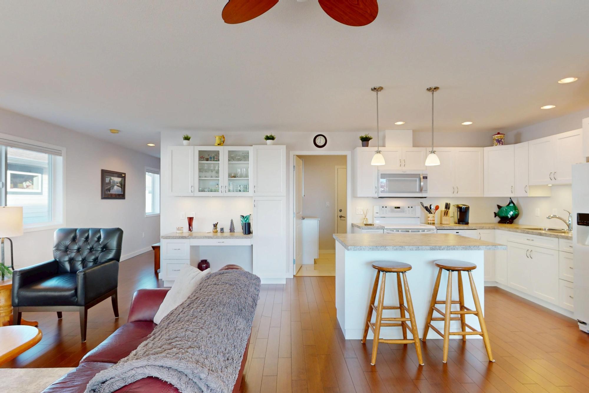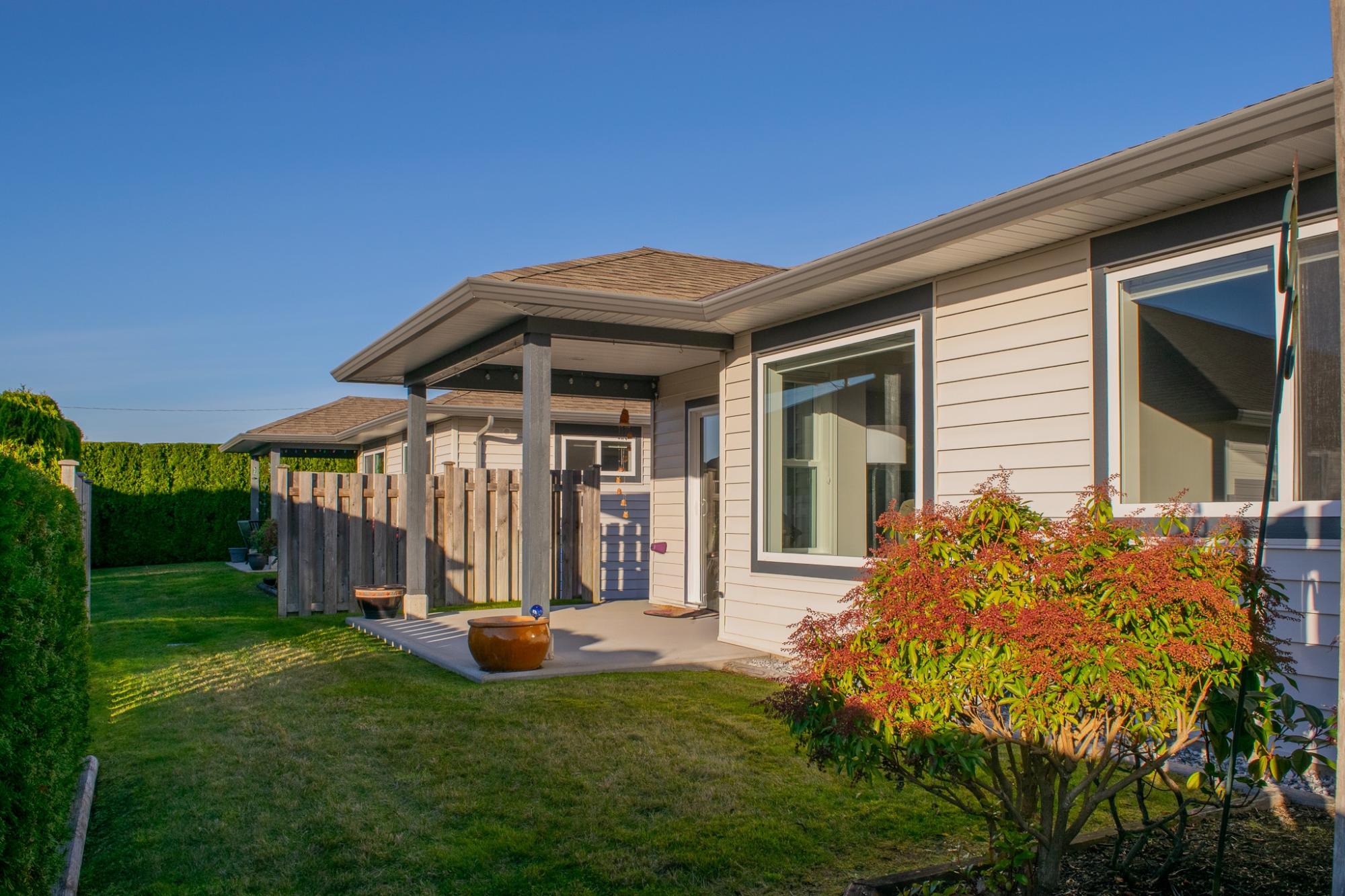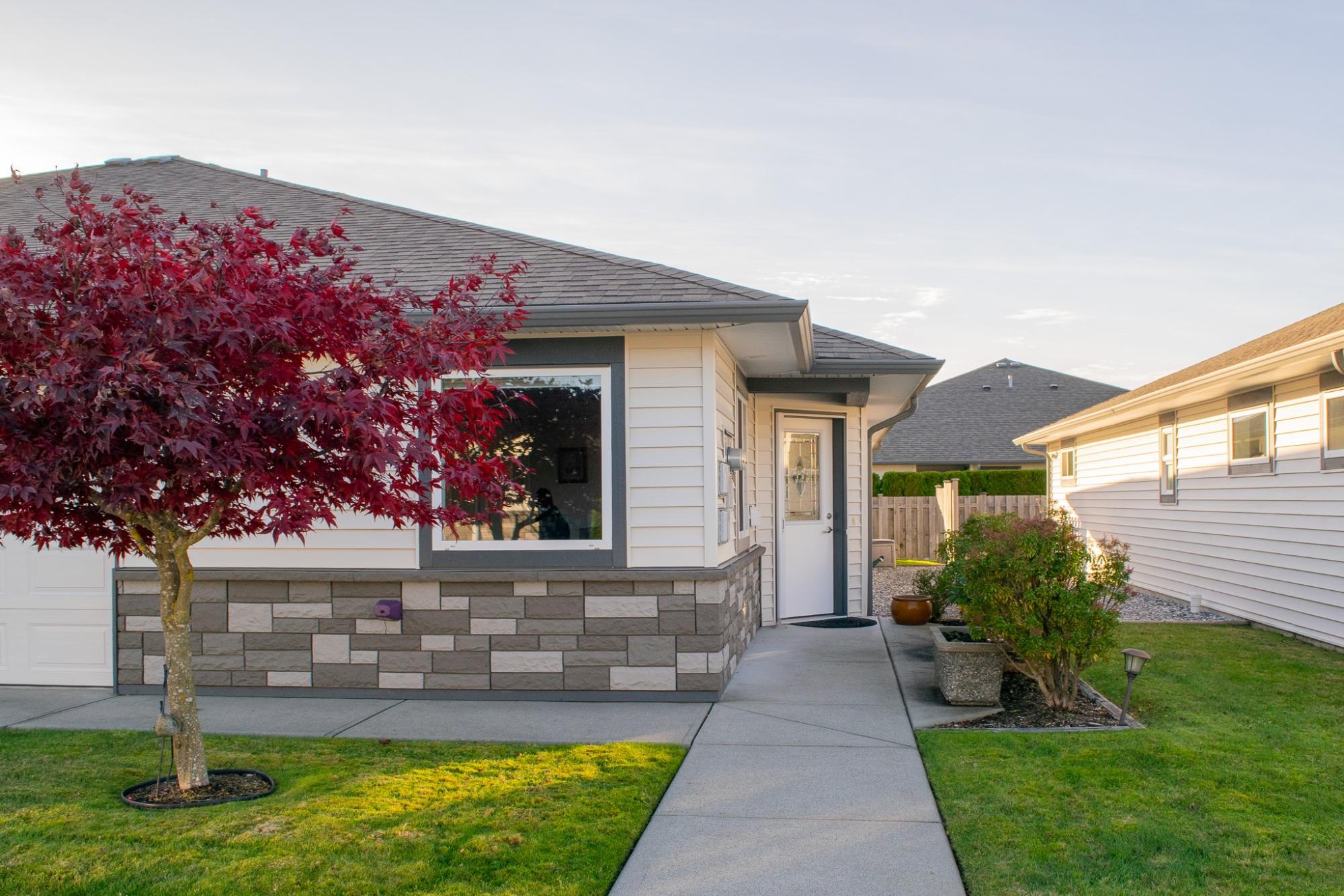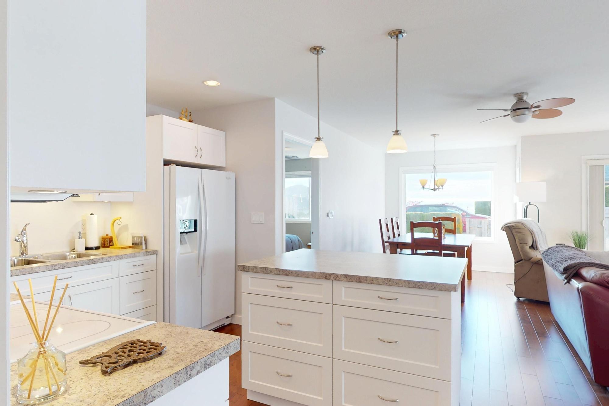 Ocean view Rancher in Emerald Lane Estates! Built in 2016 with customized upgrades the home offers 2 spacious bedrooms, 2 fully accessible bathrooms with custom walk in tile showers and a well thought out floor plan with wide hallways, ample natural light and an open concept. The master bedroom is accompanied by a large walk through closet to the ensuite and the home is equipped with Hunter Douglas electric blinds and in floor radiant heat. Lawn maintenance and landscaping are professionally cared for throughout the year. Emerald Lane is central to shopping, restaurants, and services and offers low maintenance, secure living for all ages in a friendly neighbourhood. Call, text or email to find out more.