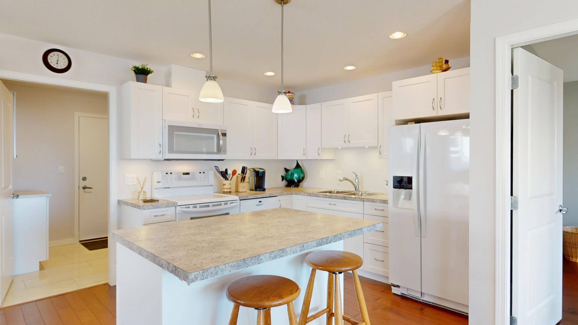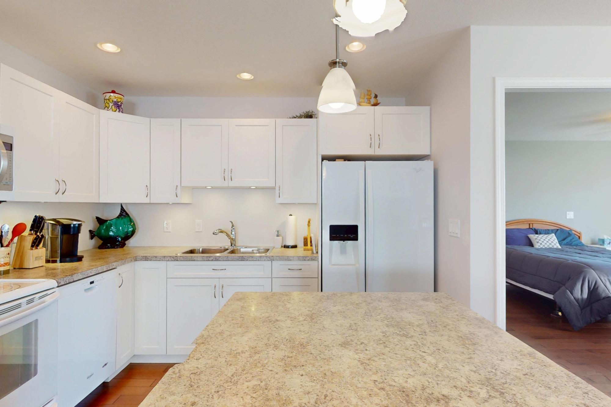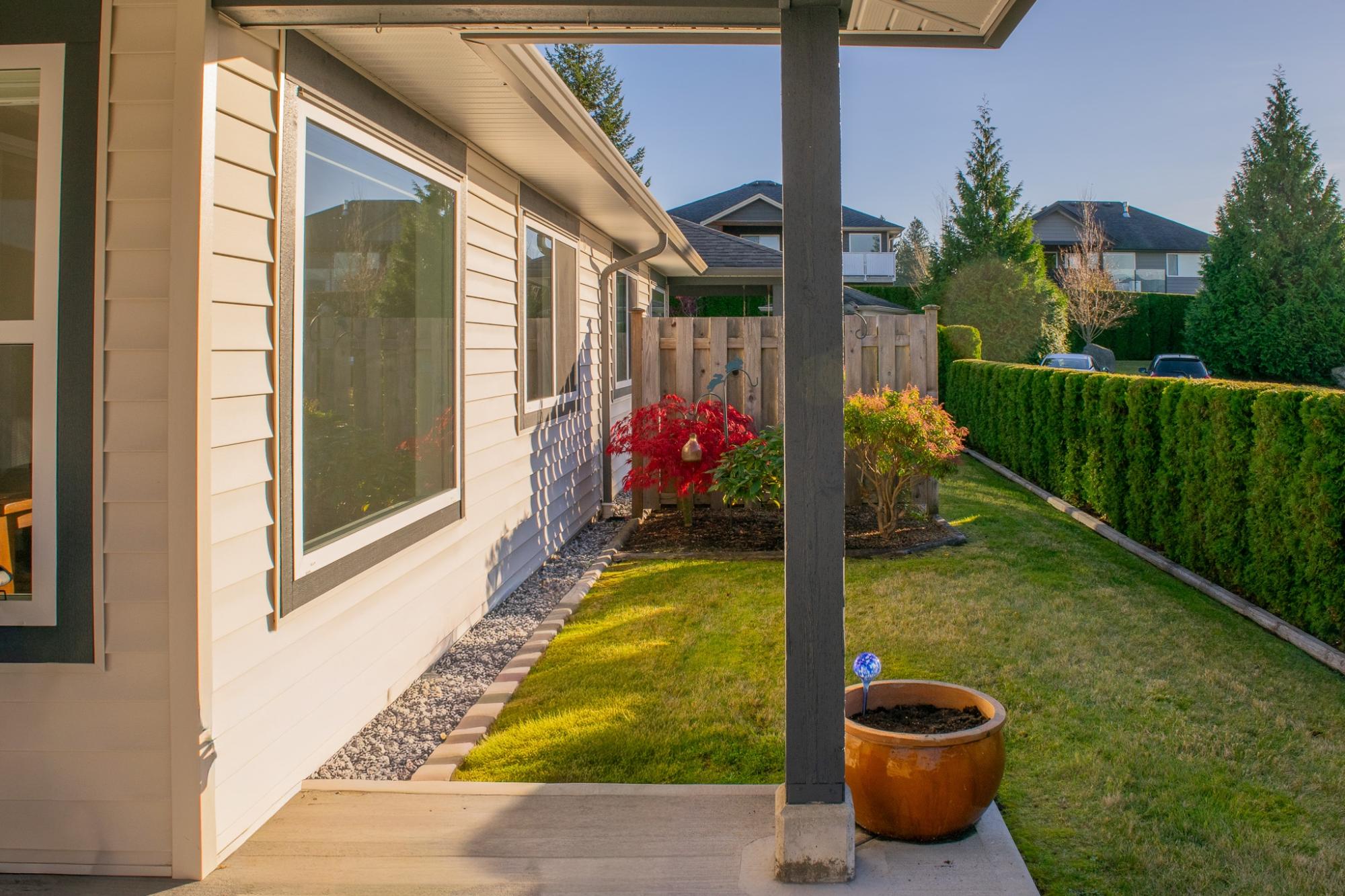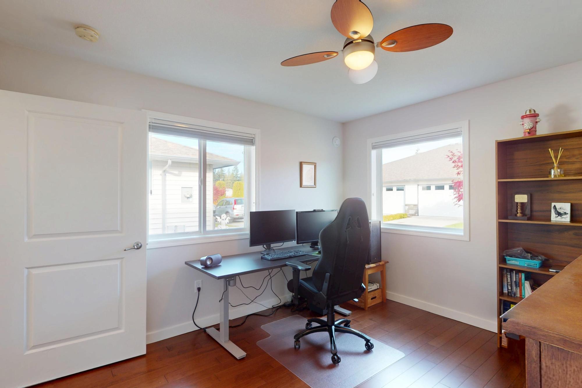 Ocean view Rancher in Emerald Lane Estates! Built in 2016 with customized upgrades the home offers 2 spacious bedrooms, 2 fully accessible bathrooms with custom walk in tile showers and a well thought out floor plan with wide hallways, ample natural light and an open concept. The master bedroom is accompanied by a large walk through closet to the ensuite and the home is equipped with Hunter Douglas electric blinds and in floor radiant heat. Lawn maintenance and landscaping are professionally cared for throughout the year. Emerald Lane is central to shopping, restaurants, and services and offers low maintenance, secure living for all ages in a friendly neighbourhood. Call, text or email to find out more.