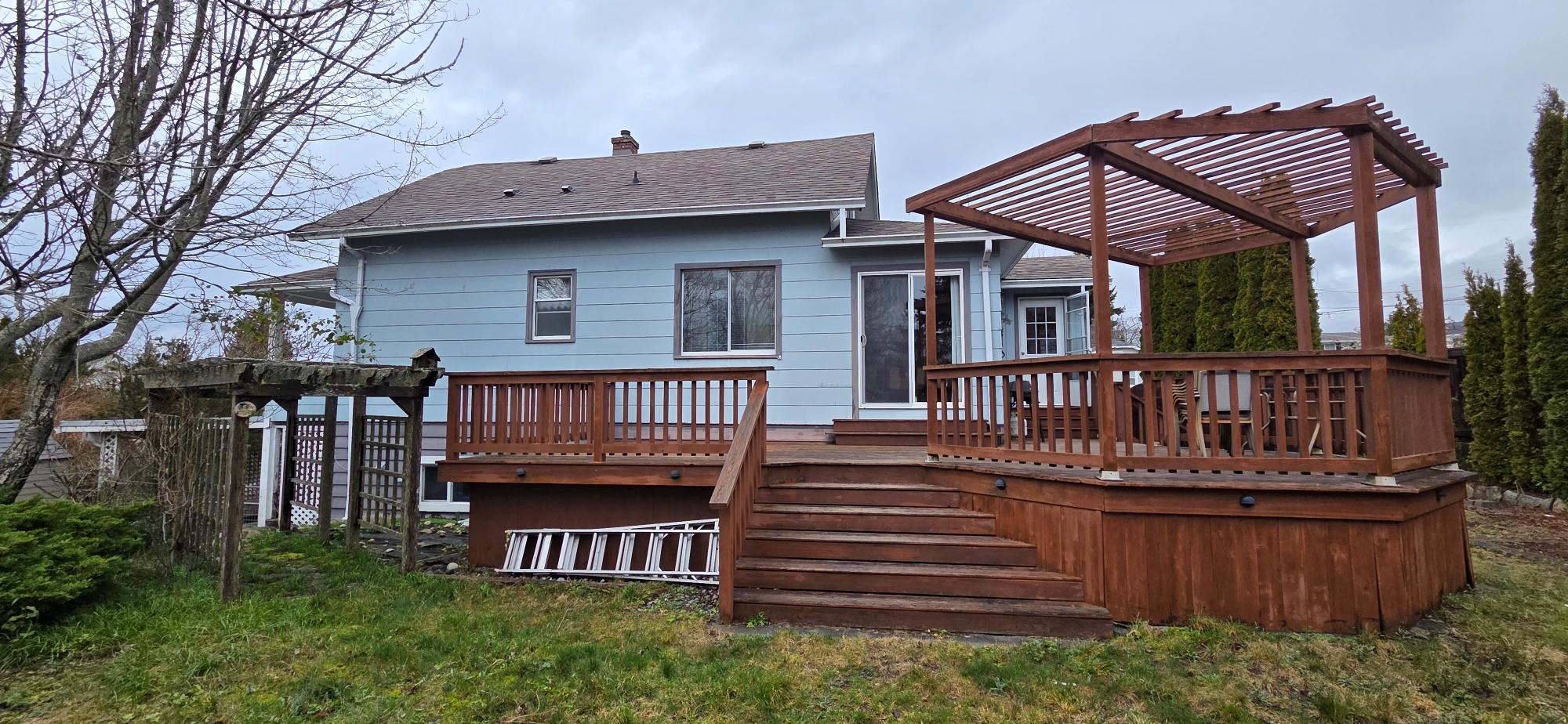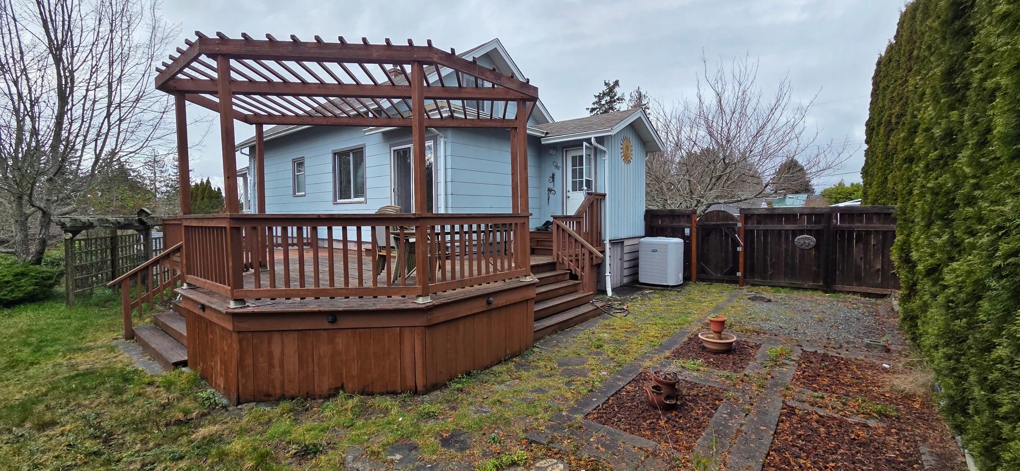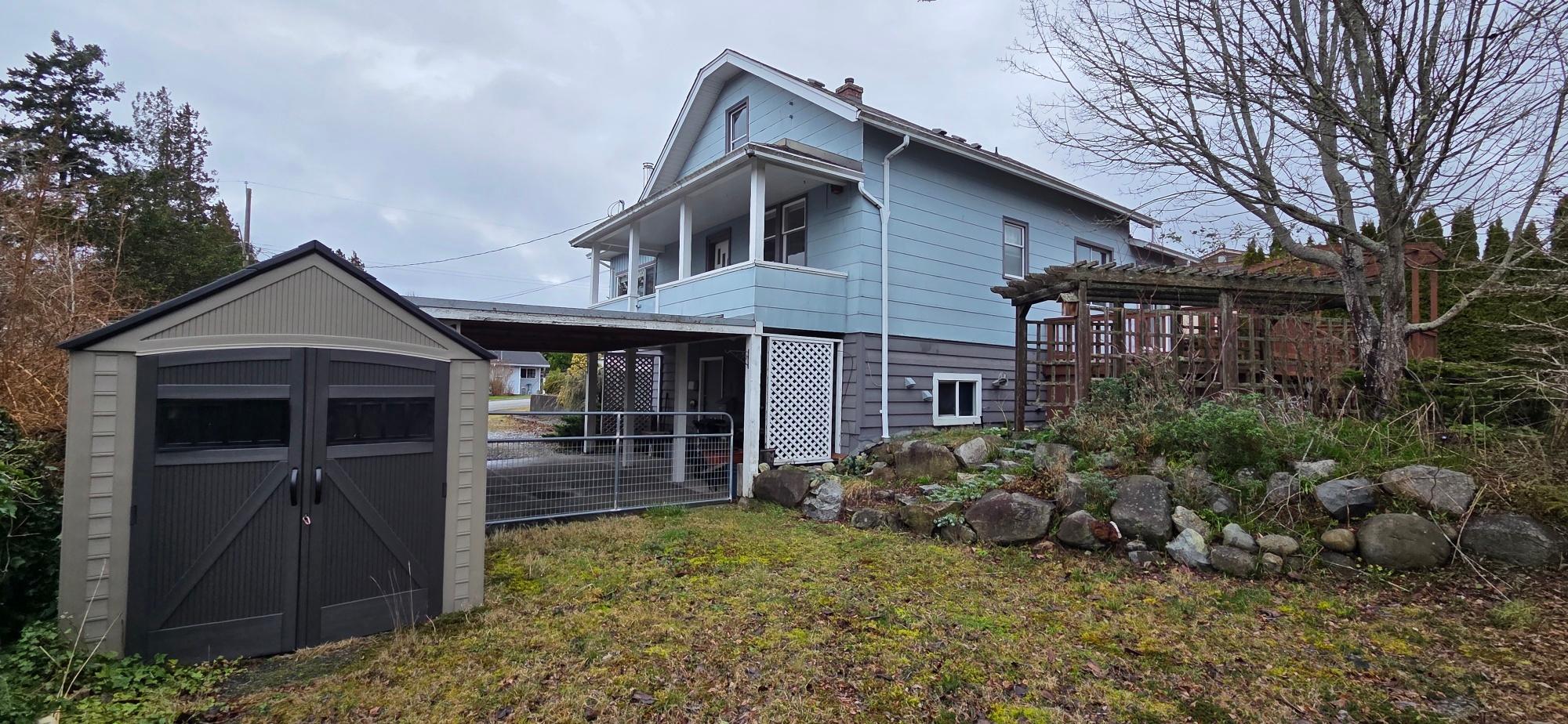 Imagine a house so well loved that it was moved to a bigger lot, elevation and ocean view. This original Townsite home was moved to this gorgeous 88x132 lot big enough for a second dwelling or mega gardens. The ocean facing covered patio offers stupendous sunshine views and serenity. Ample parking with RV parking on the other side. Potential ease for more bedrooms for bigger families. Check out the 2025 sold comparisons on Jordan ranging from $700+ to $900+. This is an excellent street to lay your hat and call home. Lots of extras including pre installed chimney stack for wood burning stove, sprinkler system (not in use in recent years) and more.