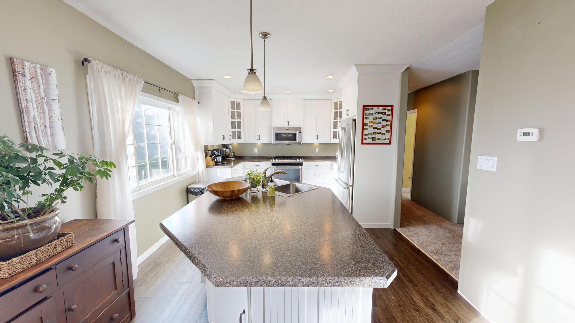 Welcome to your private slice of paradise. Nestled on a quiet dead-end road, this beautifully maintained 3-bedroom, 3-bathroom, three-storey home sits on a pristine 1.41-acre property with peaceful forest views behind. Thoughtfully updated and lovingly cared for, this cozy yet spacious home is ideal for a growing family seeking space, privacy, and comfort. The main floor features a newer, beautifully updated kitchen and stylish flooring, creating a warm and inviting space for everyday living and entertaining. Convenient main-floor laundry adds to the home’s functionality, with additional laundry hookups located in the unfinished basement. All three bedrooms are privately situated on the third floor, offering a quiet retreat for the entire family. Heating is efficient and versatile with a natural gas furnace complemented by a Blaze King wood stove, providing both comfort and ambiance during the cooler months.