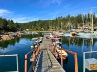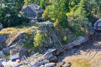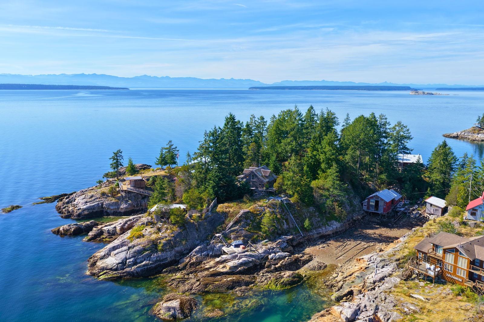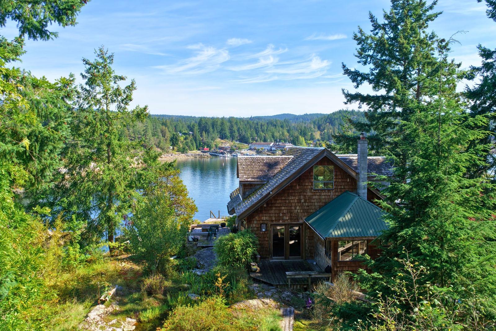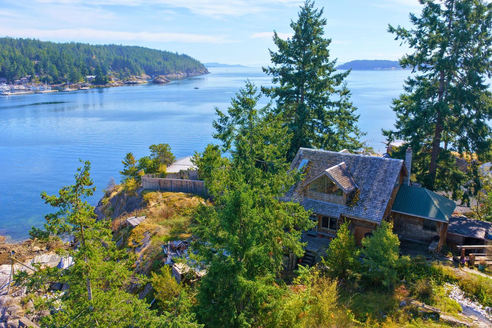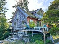 Oceanfront Cottage & Guest Cabin on Sevilla Island minutes from Lund Harbour, surrounded by ocean vistas and natural beauty, delivering true coastal living. This 1,738 ft², 2-bedroom, 2-bathroom cottage plus separate one-bedroom guest cabin sits on the south-east side of the island with 215 ft of shoreline overlooking Lund Harbour. Just a 4-minute boat ride from Lund, the half-acre property features mature landscaping, flat lawn, and a small pond. The rustic cottage blends charm with modern conveniences and includes a sunroom and multiple decks plus an upstairs loft with bedroom, office, and bath. A shop area under the home adds storage and workspace. The guest cabin offers a bed, sitting area, bathroom, and power—ideal for family or guests. Community water, sewer, and hydro are rare benefits on a boat-access island. Close to Desolation Sound, Savary Island, and Copeland Islands Marine Park, this is an ideal seasonal or full-time residence. Call to book an appointment to view!