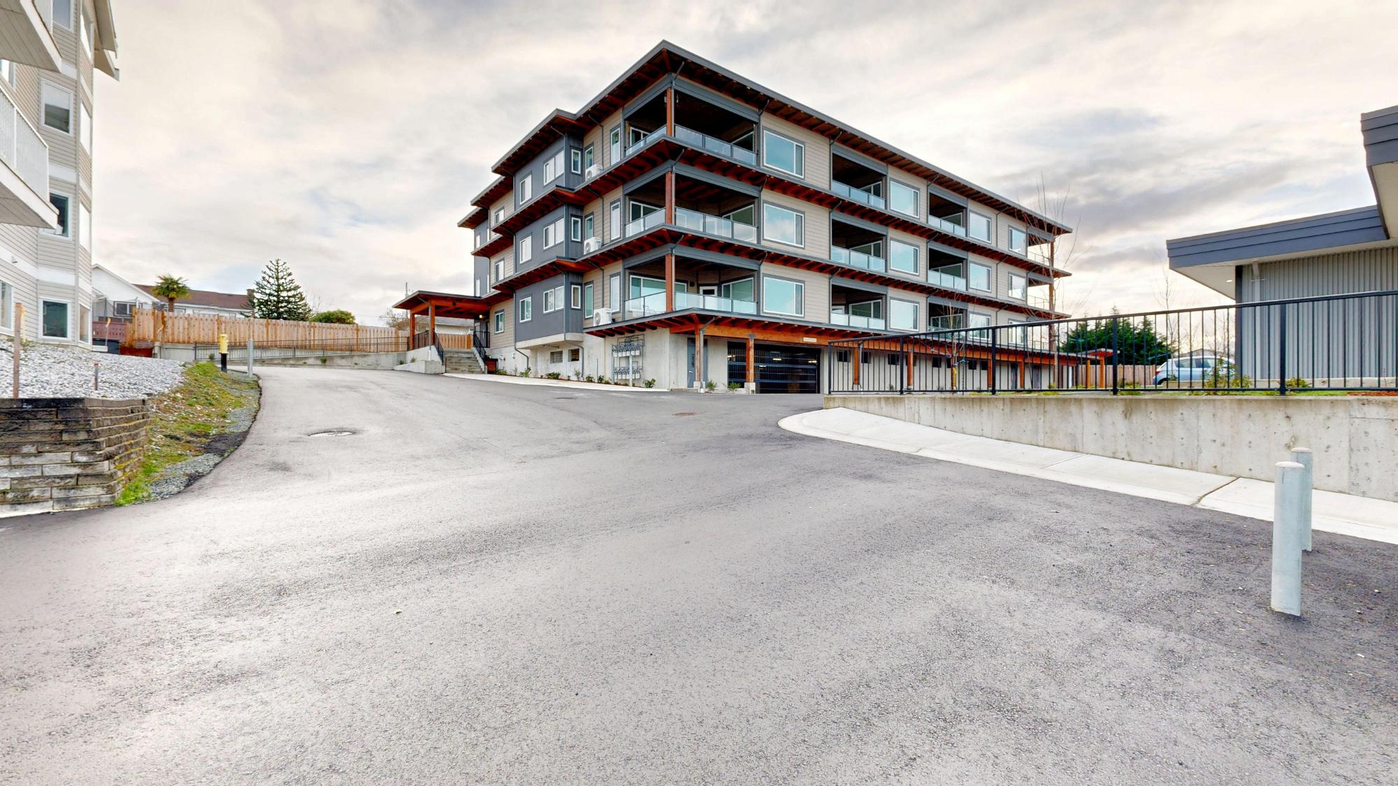OCEAN VIEW 2 Bedroom, 2 Bath Condo. Make an easy move and a fresh start in this brand new, central and spacious condo. Enjoy lovely ocean views from the main living areas, and have front row seats for amazing sunsets on the large covered deck. The kitchen has a sit-up island, adding storage and counter space, and the spacious living room has a feature fireplace to gather around. Primary bedroom has a generous walk-through closet to an ensuite bathroom. High ceilings with plenty of overhead lighting along with easy-care, continuous flooring creates a bright, welcoming home. Building features secure underground parking, elevator service, and pets are permitted. Call for more information and book your appointment to view.