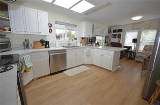 Beautifully remodelled, this lovely mobile is located in the heart of Rocky Creek Village and offers a generous floor plan with 3 bedrooms and 2 full baths. The bright floor plan offers almost 1500 sq ft of living that has been extensively updated with new flooring, paint, moldings, drywall, updated kitchen cabinets, new counter tops, updated bathrooms, new roof & skylights, new plumbing (Pex), water filtration, wired humidifier and the list goes on. Move in ready. Lots of garden areas as well with a carport and shed. Just a short drive to shopping, medical centre and more.