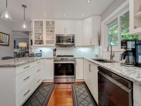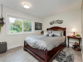 Fantastic family home with suite on a quiet no-through street! This is the one you have been waiting for; 3 full bedrooms on the main level with a fully self-contained 1 bed suite on the lower PLUS an additional den/office/extra bedroom for the main. Beautifully updated with newer kitchen (quartz counters, stainless appliances w/ induction stove), hardwood flooring, efficient gas fireplace, updated windows, siding and a roof still under warranty. Double car garage and 2 storage sheds offer plenty of room for cars, hobbies and all your gear. Extra long driveway, lots of off-street parking for your cars, RV or boat. Large flat lot is a gardener's dream. An impressive fully landscaped and irrigated yard offers lots of privacy; a must-see sanctuary in the city! Brand new 60k septic treatment system. Just a few steps away is a neighborhood park with kids playground and pickleball court. A well-maintained home and property, just move in and enjoy!