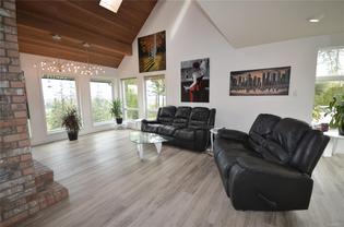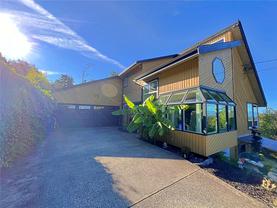 Acreage and beautiful home in the City! Want all the coneniences of city living with some extra space? You have found it!! Located close to everything and offering over an acre of beautiful property combined with a fabulous West Coast inspired home that has been extensively updated. Perched at the top of the property to take advantage of the stunning views of the coastal mountains and ocean, this 3 level home provides ample of space! The main floor is bright and airy with loads of windows and a light colour scheme. The new vinyl plank floors extend throughout and accent all the other updates. An elegant great room concept with wood burning and electric fireplaces, generous kitchen with newer paint and counters and amazing vaulted ceilings. The upper level offers 3 bedrooms and 2 full newer bathrooms with spa like soaker tub and huge walk in shower. The lower level features a great rec room with wood stove and another bedroom/studio. The efficient heat pump for all year comfort and A/C plus loads of RV & Boat storage and a great shop! The ideal property offers a variety of options and is fully fenced with fruit trees, garden areas and so much more. A complete package! Just blocks to Vancouver Island University, schools, shopping, restaurants, parks, Westwood Lake and Nanaimo’s beautiful harbour.