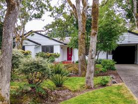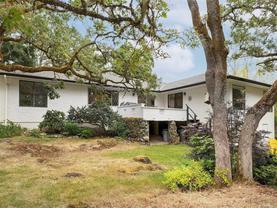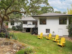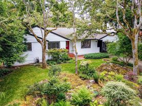 Oak Bay ONE LEVEL HOME on a rare 16,000+ sq ft private property. This light filled rancher has been lovingly maintained & awaits your cosmetic ideas. The spacious living room features leaded glass windows, hardwood floors, and a cozy fireplace, opening to a dining area with sliding doors to a private deck and fenced yard. The bright kitchen with eating area flows into a generous family room with garden views. Recent updates include a main bath reno (2020), new chimney (2015), new dishwasher, 240V electrical panel, and a gas furnace for year-round comfort. The yard features a low-maintenance Garry oak meadow & mature gardens; trees professionally inspected and trimmed (2024). Ideally located near UVic, top schools, Uplands Golf Club, Mount Tolmie, Henderson Rec Centre, Gyro Park, and Cadboro Bay village. A fantastic home for a couple, small family, retirees downsizing or even a potential property for a new build all in a prime Oak Bay location.