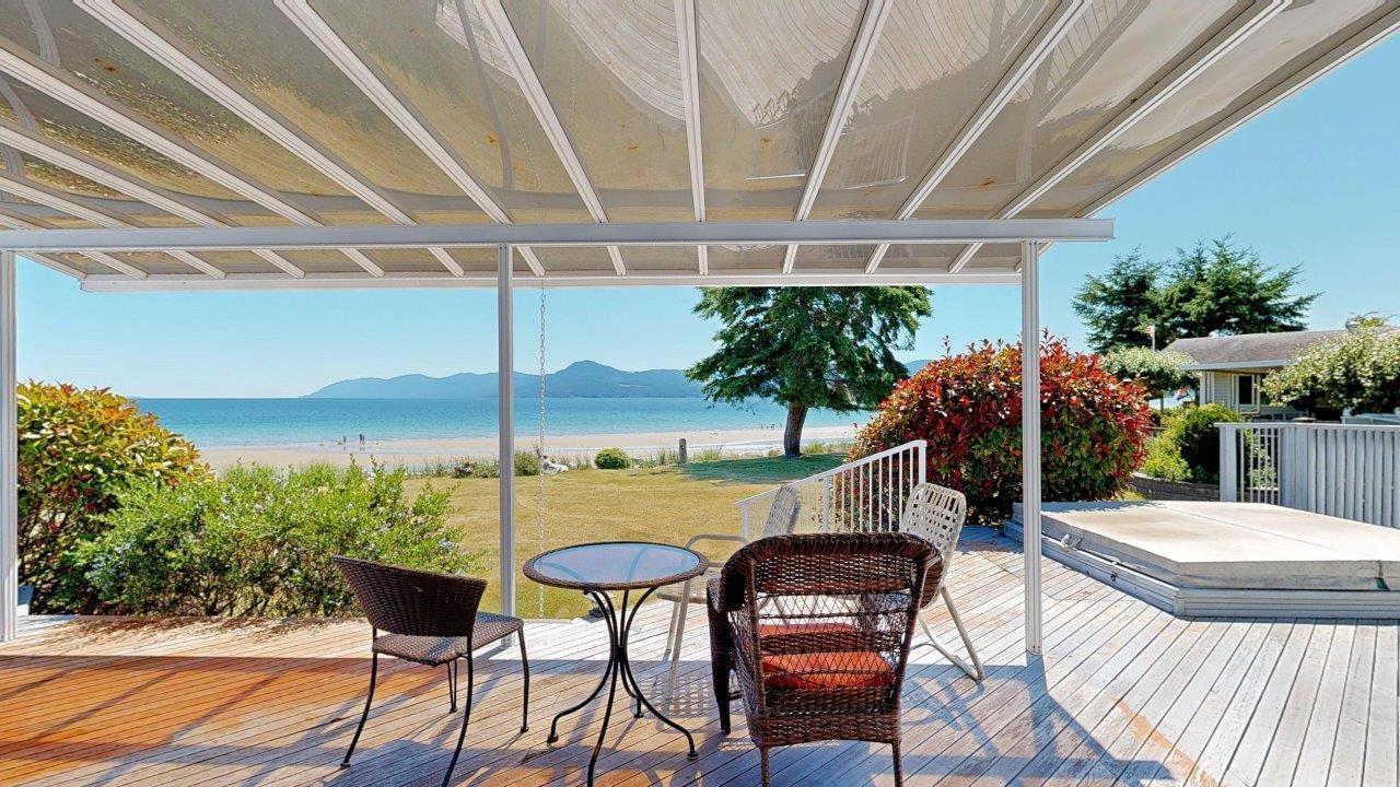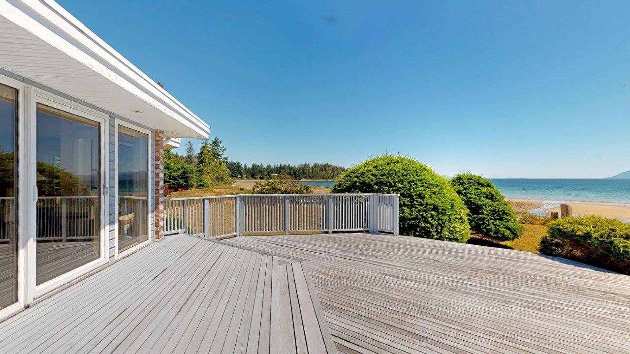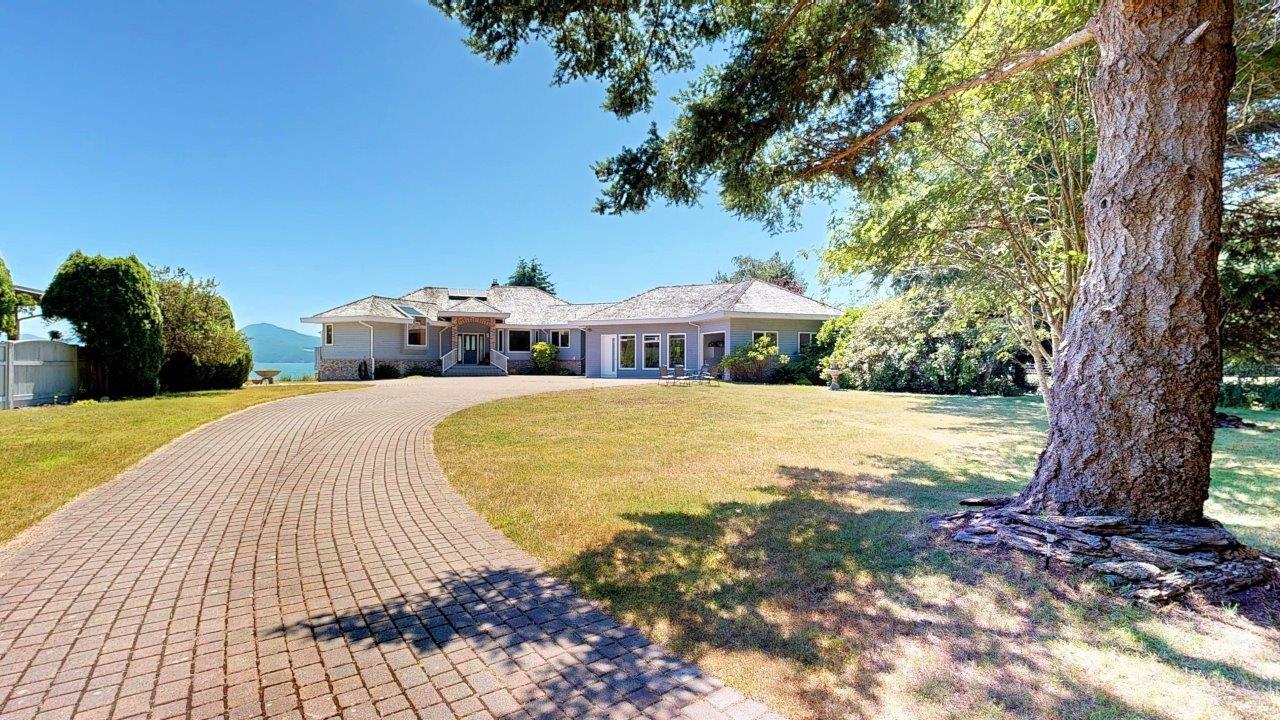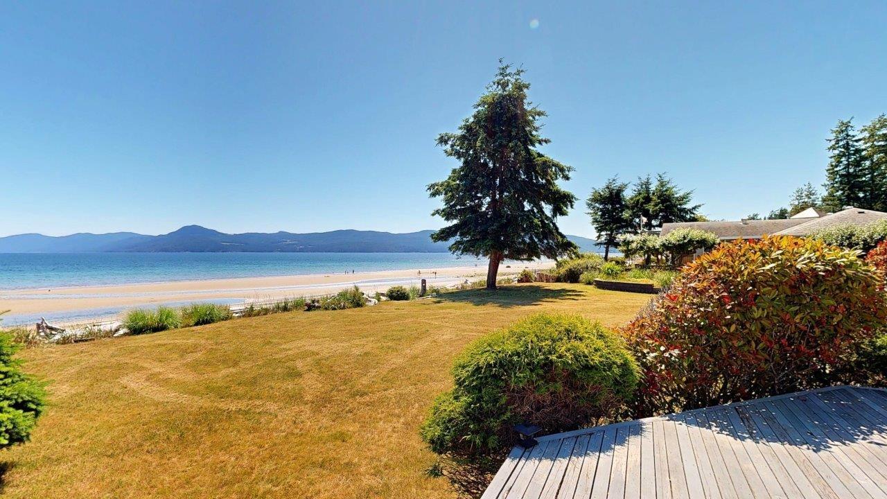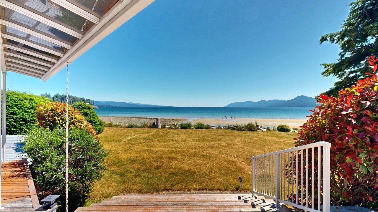 BEACHFRONT HOME & SUITE – Step outside your door for a quiet stroll on sandy Donkersley Beach! This spacious, two bedroom, 2 bath rancher is set on 1.15 acres with close to 115’ of frontage. Large windows and sliding doors showcase spectacular views across the sparkling Salish Sea to Texada Island. Beautiful, bright kitchen has fantastic storage and workspace, and there’s solarium-style breakfast nook. The living room features a cosy fireplace with stone surround, vaulted ceiling and sliding doors to the tiered deck fronting the entire water-side of the home. A luxuriously large main bedroom opens to the deck, and features an ensuite bath with shower, soaker tub, and convenient access to the outdoor hot tub. The bright & spacious self-contained guest suite features a kitchenette and 4pc bath. Beautiful landscaping provides privacy without hindering views, and there are plenty of shaded areas among towering trees. These properties don’t come up often, so get all the details today!