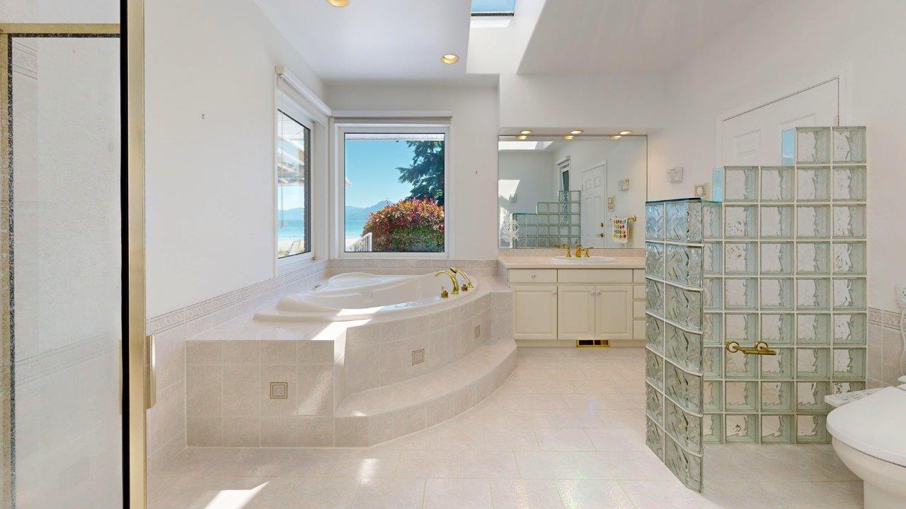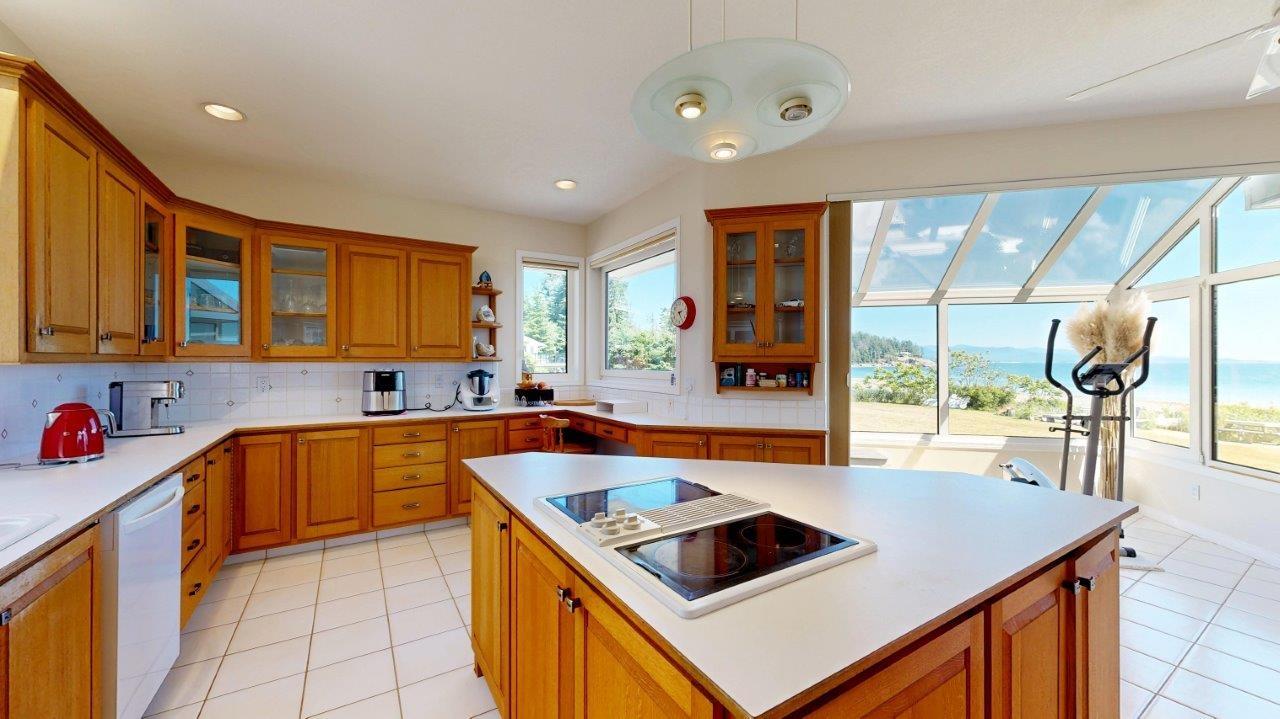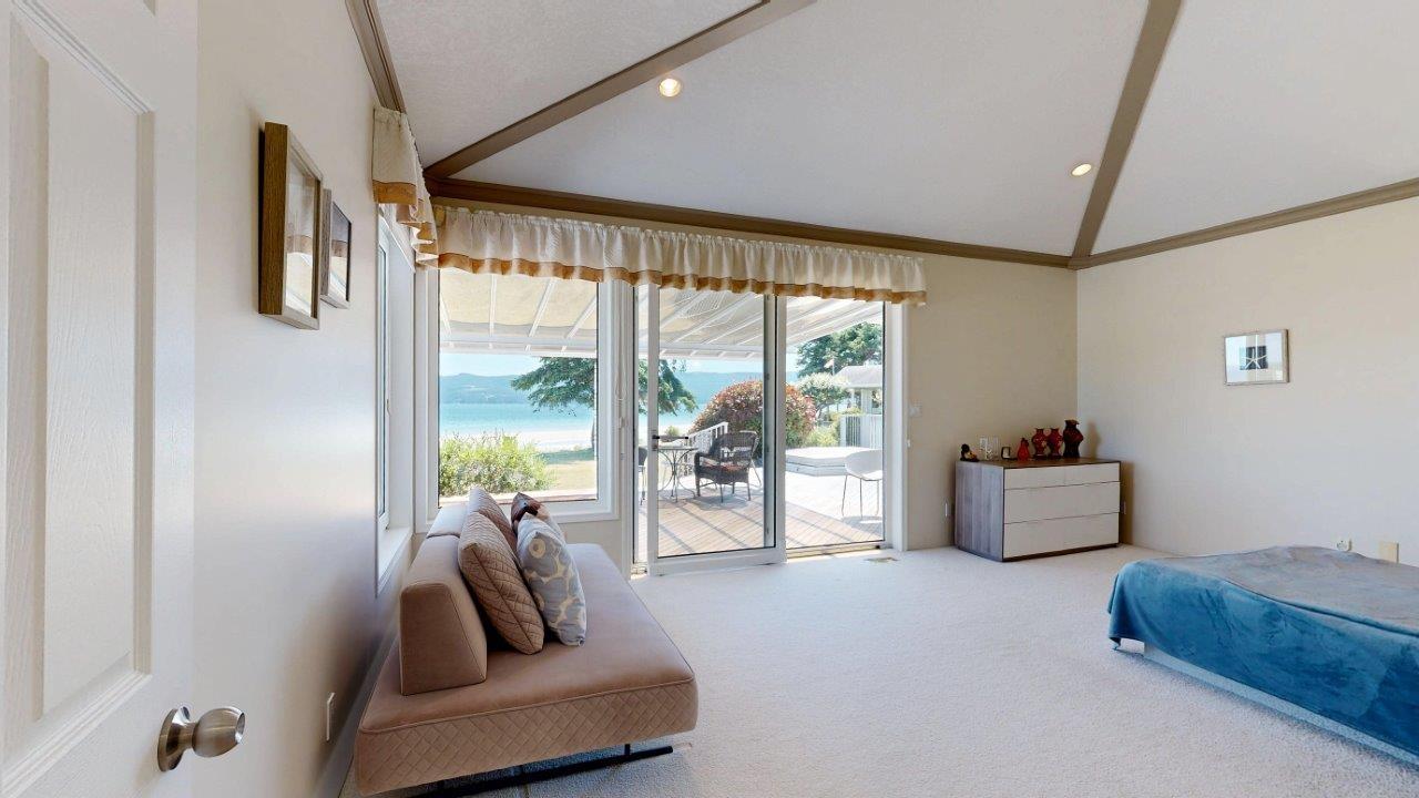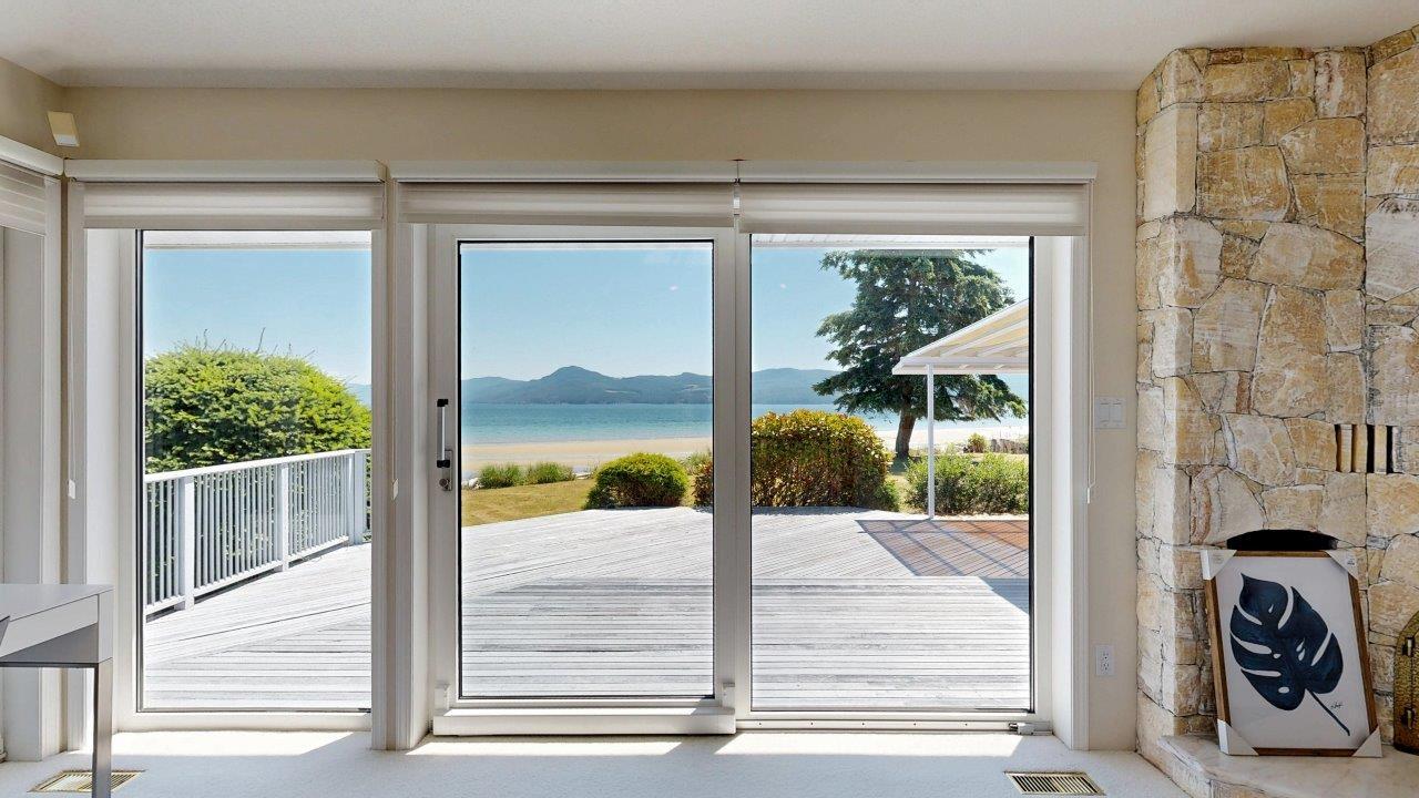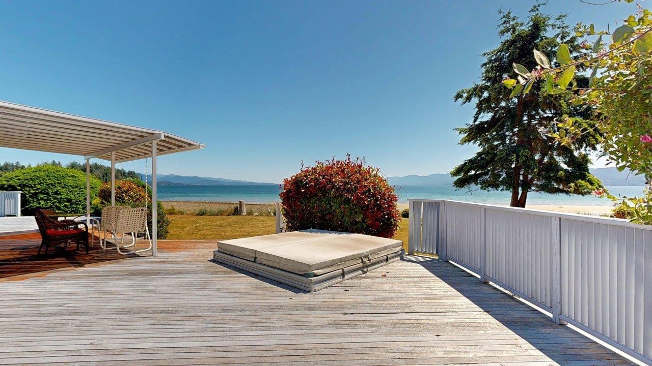 BEACHFRONT HOME & SUITE – Step outside your door for a quiet stroll on sandy Donkersley Beach! This spacious, two bedroom, 2 bath rancher is set on 1.15 acres with close to 115’ of frontage. Large windows and sliding doors showcase spectacular views across the sparkling Salish Sea to Texada Island. Beautiful, bright kitchen has fantastic storage and workspace, and there’s solarium-style breakfast nook. The living room features a cosy fireplace with stone surround, vaulted ceiling and sliding doors to the tiered deck fronting the entire water-side of the home. A luxuriously large main bedroom opens to the deck, and features an ensuite bath with shower, soaker tub, and convenient access to the outdoor hot tub. The bright & spacious self-contained guest suite features a kitchenette and 4pc bath. Beautiful landscaping provides privacy without hindering views, and there are plenty of shaded areas among towering trees. These properties don’t come up often, so get all the details today!