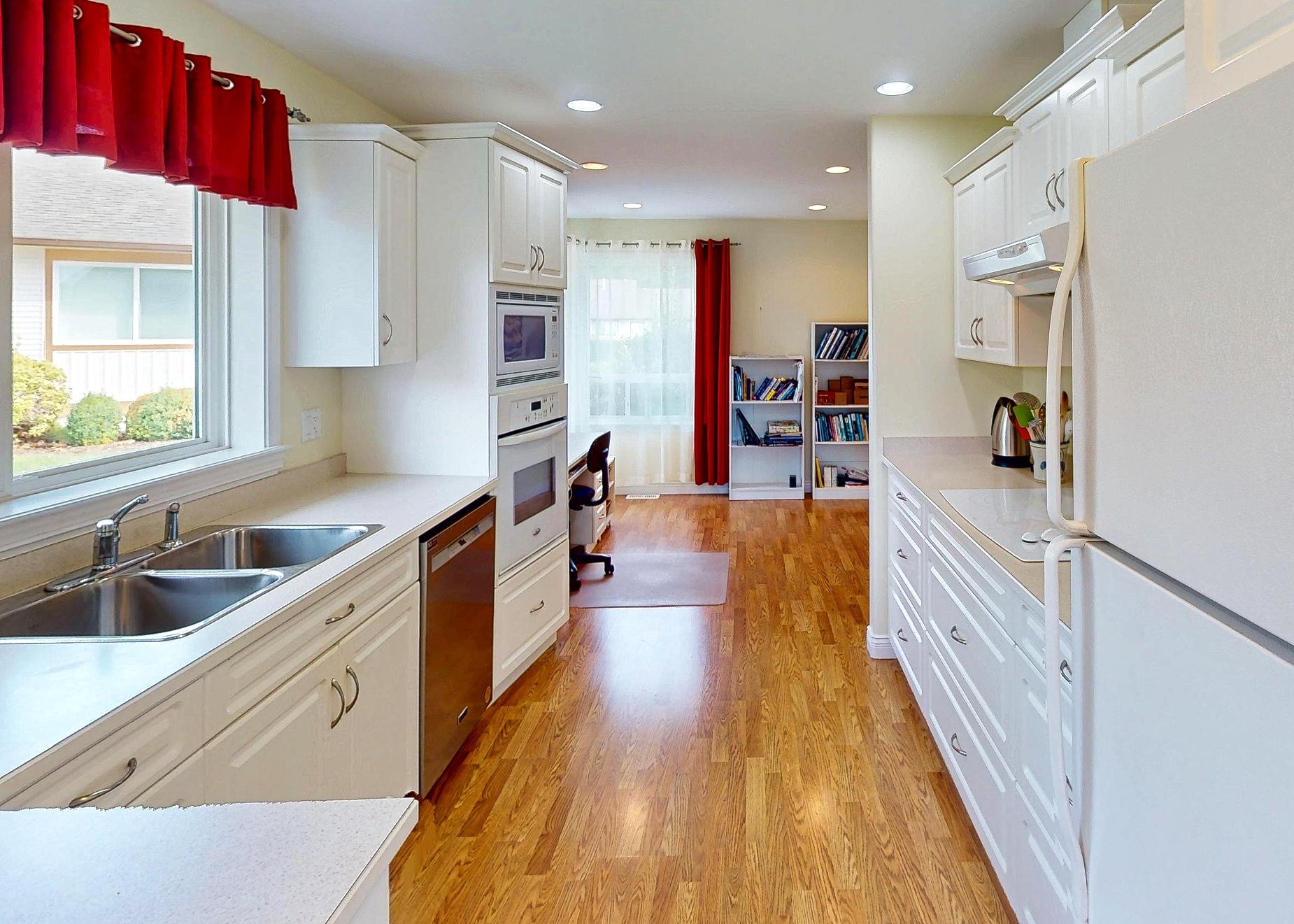 Bright and welcoming, this well-cared-for 2 bedroom, 2 bathroom half duplex is tucked away in the back of the sought-after Maple Crest Retirement Community. Only a few of these units have this desirable floor plan- the open kitchen flows nicely into the living and dining areas, where large windows fill the space with natural light. A versatile den with built-in storage adds extra functionality. The spacious primary bedroom includes a private 3-piece ensuite, while the second bedroom and full 4-piece bath are perfect for guests. You’ll appreciate the ample closet space, plus the convenience of a double garage. Step outside to a covered back patio and enjoy the beautifully maintained grounds. With level entry and easy accessibility, this home is ideal for those with limited mobility. Just minutes from all amenities, it’s the perfect blend of comfort and convenience. Call today to book your showing