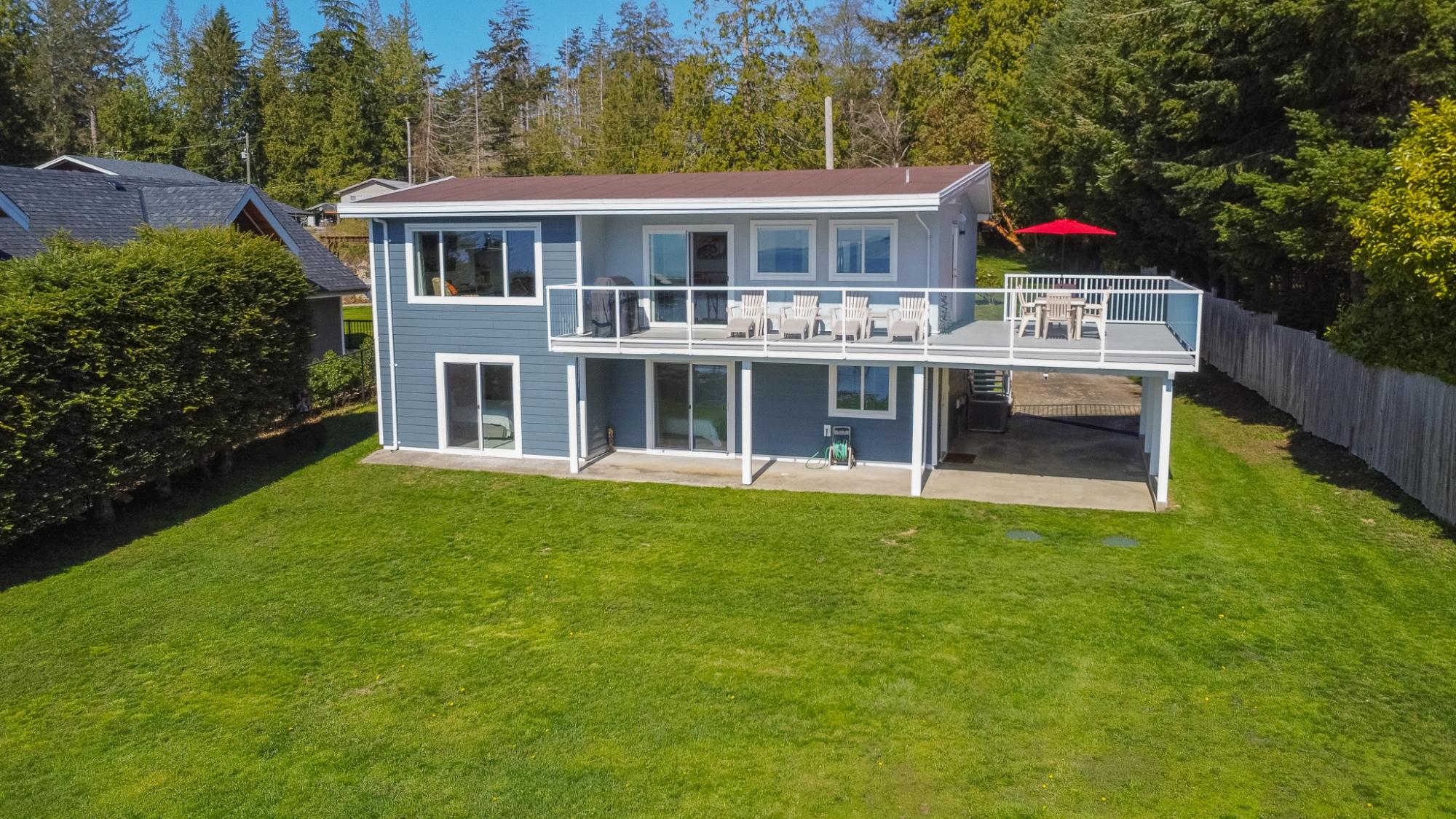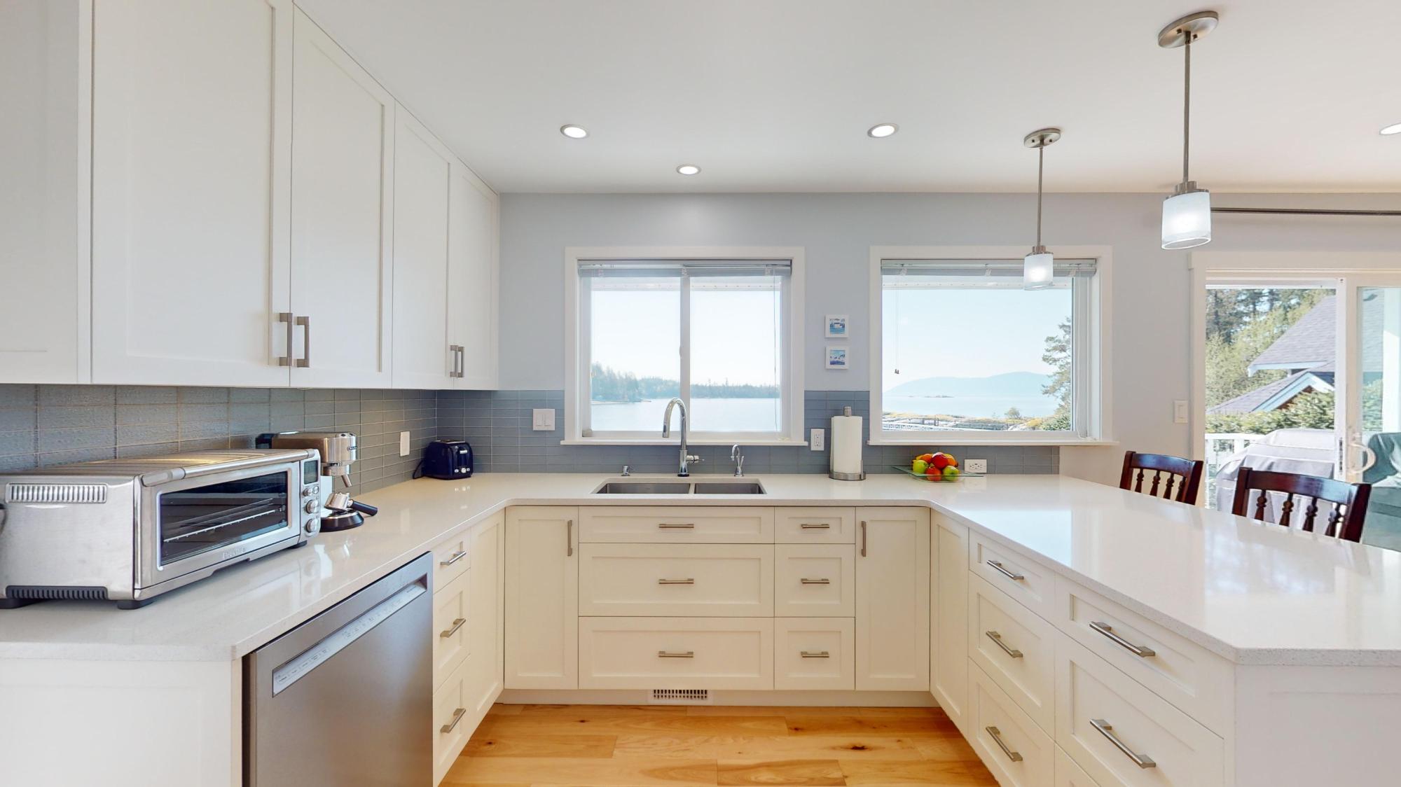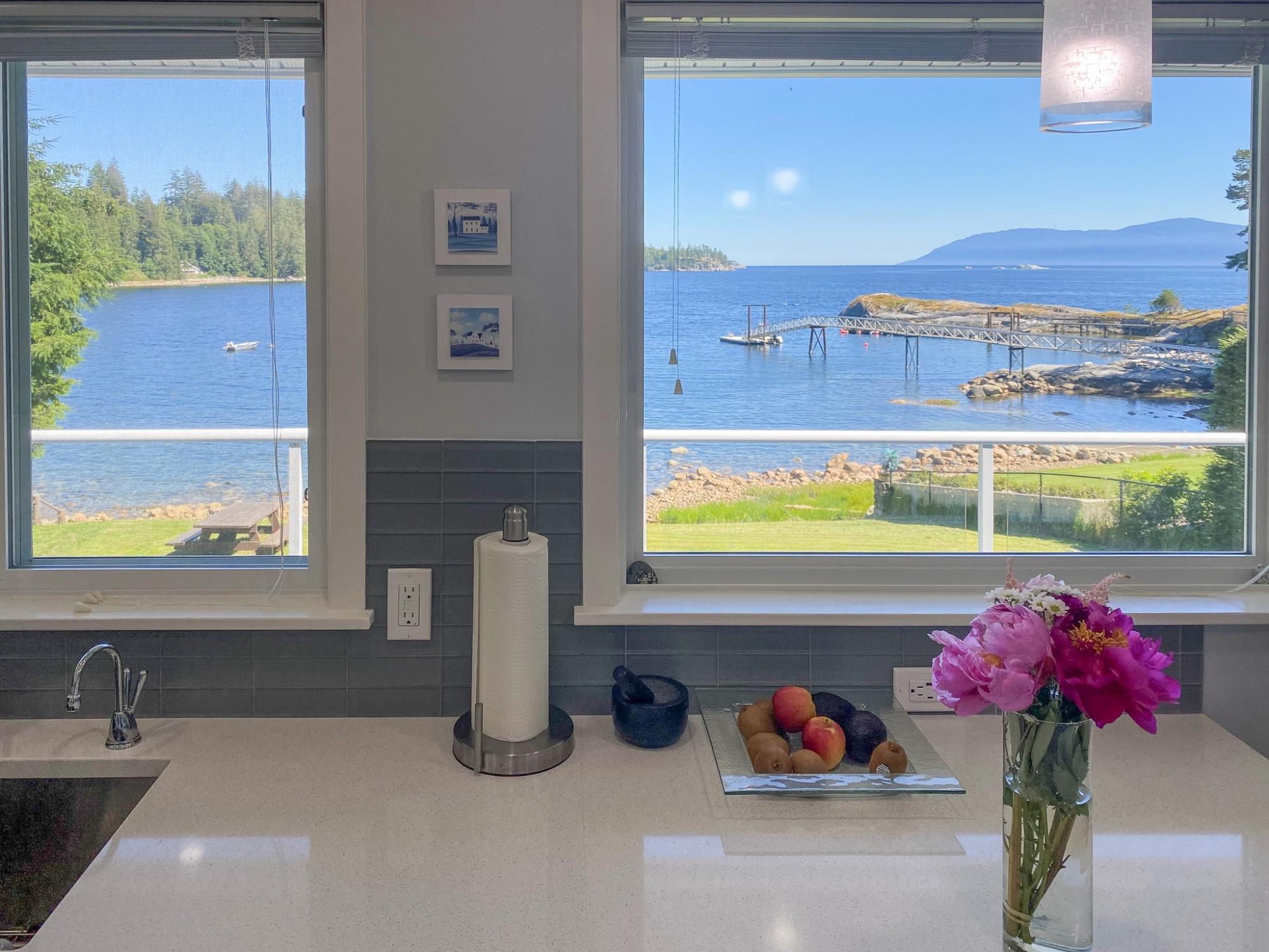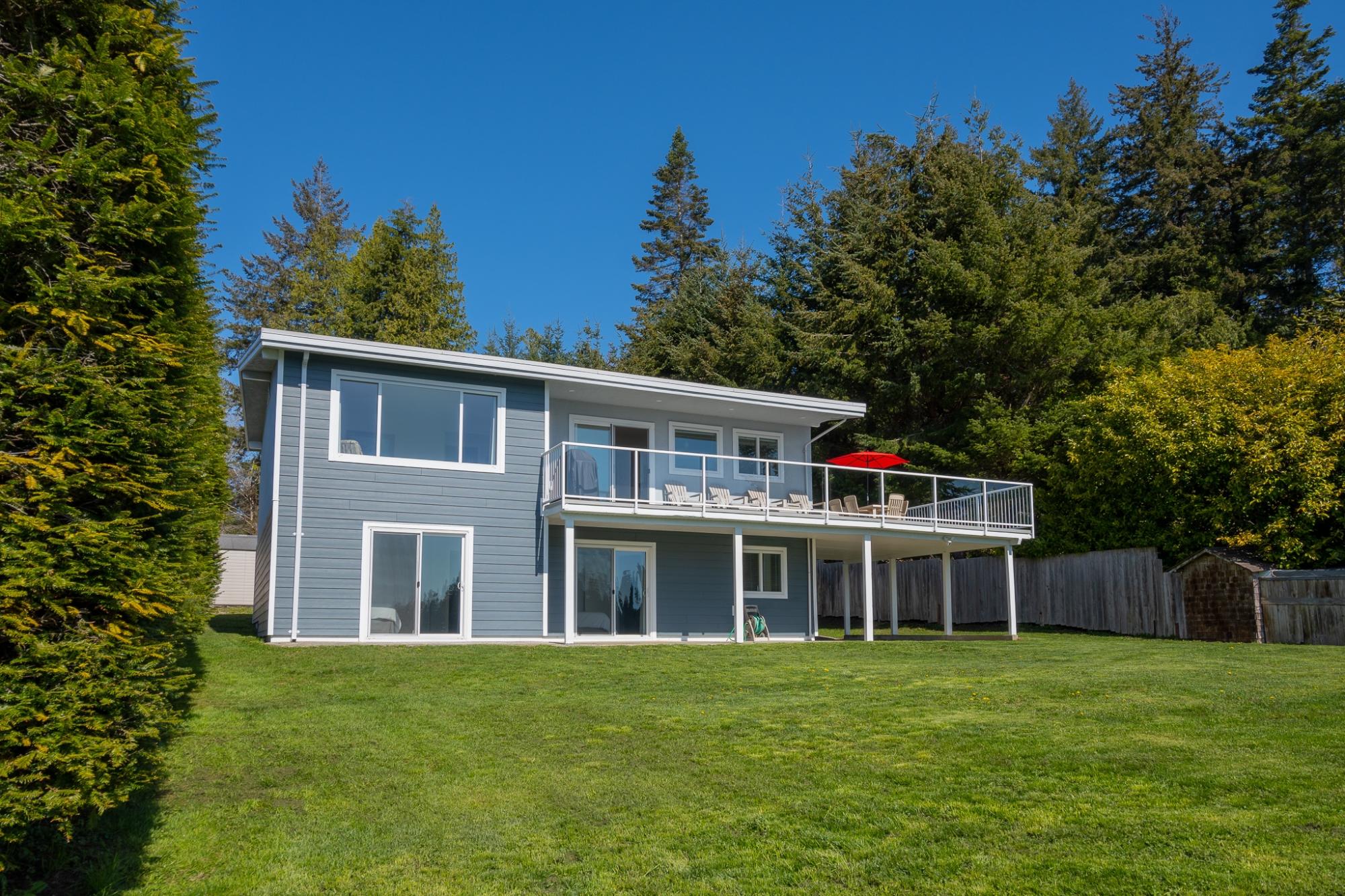 WALK-ON WATERFRONT! This waterfront property offers a combination of exceptional home and awe inspiring seaside living. Nestled in Frolander Bay near the Stillwater Bluffs this home enjoys southern exposure and unobstructed views in a protected bay. The gently sloping lot is over 0.5 an acre with 80' of pristine beachfront. This home has been renovated with stunning hardwood floors, new windows and a bright, open plan ideal for your waterfront retreat. The custom kitchen features ceiling-height cabinets, quartz counters and glass tile backsplash with eat-up peninsula and stainless appliances, opening to the wrap-a-round deck, ideal for hosting. The entire living space is open concept and enjoys natural light and ocean views. Main-level-master features stunning ensuite with rain water shower and dual vanity. The home offers 5 bedrooms and 3 bathrooms. The ground floor has 3 spare bedrooms for guests and family. This stunning home is a must see!