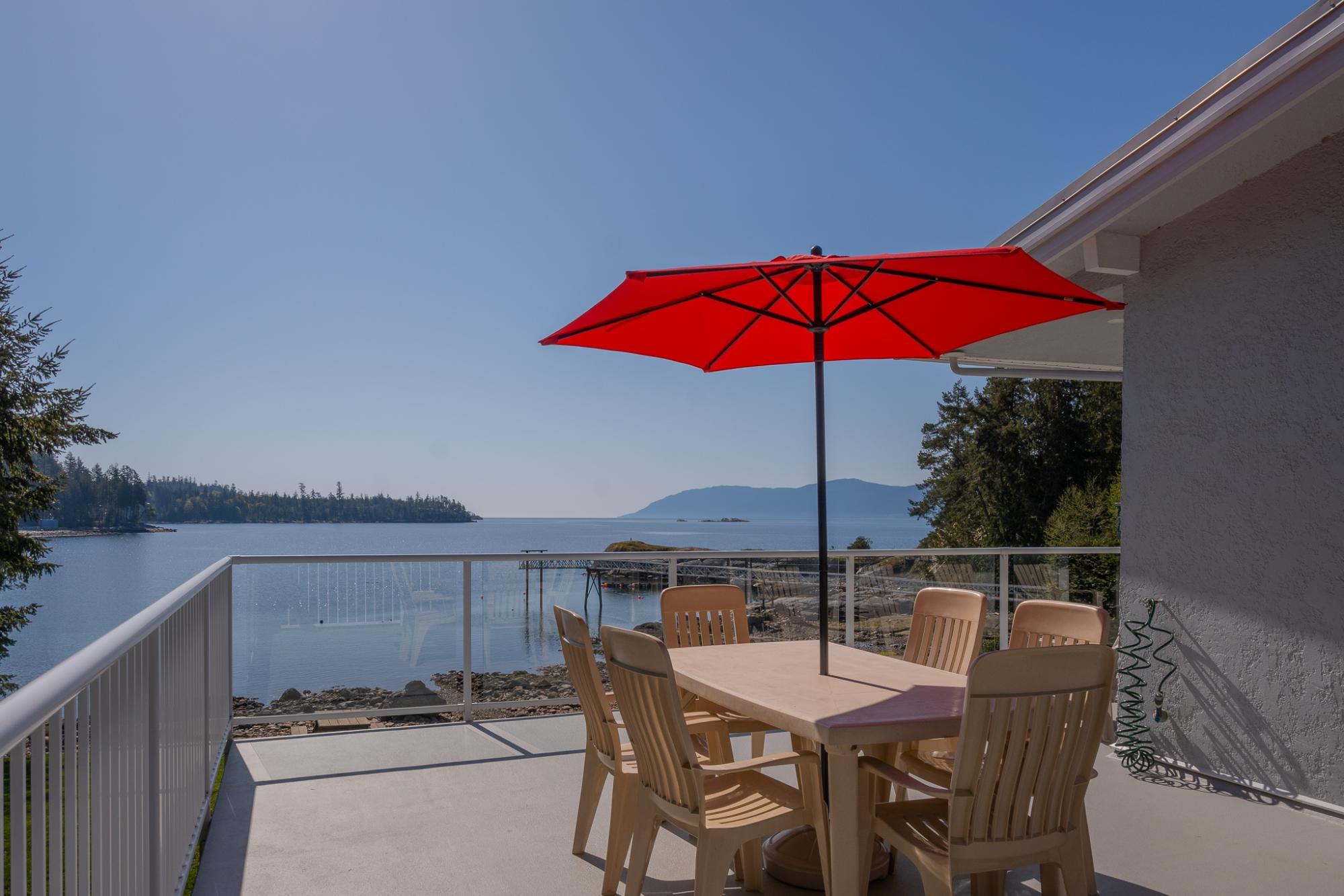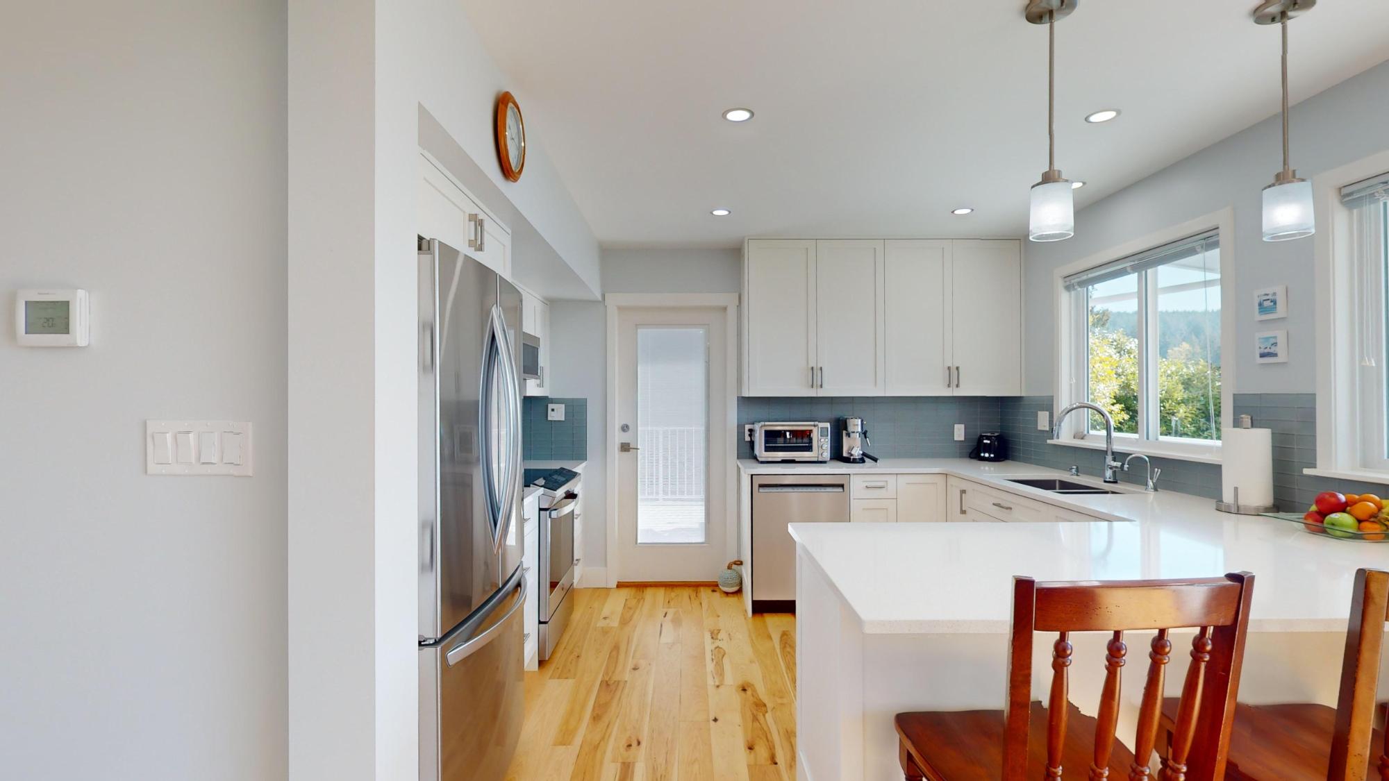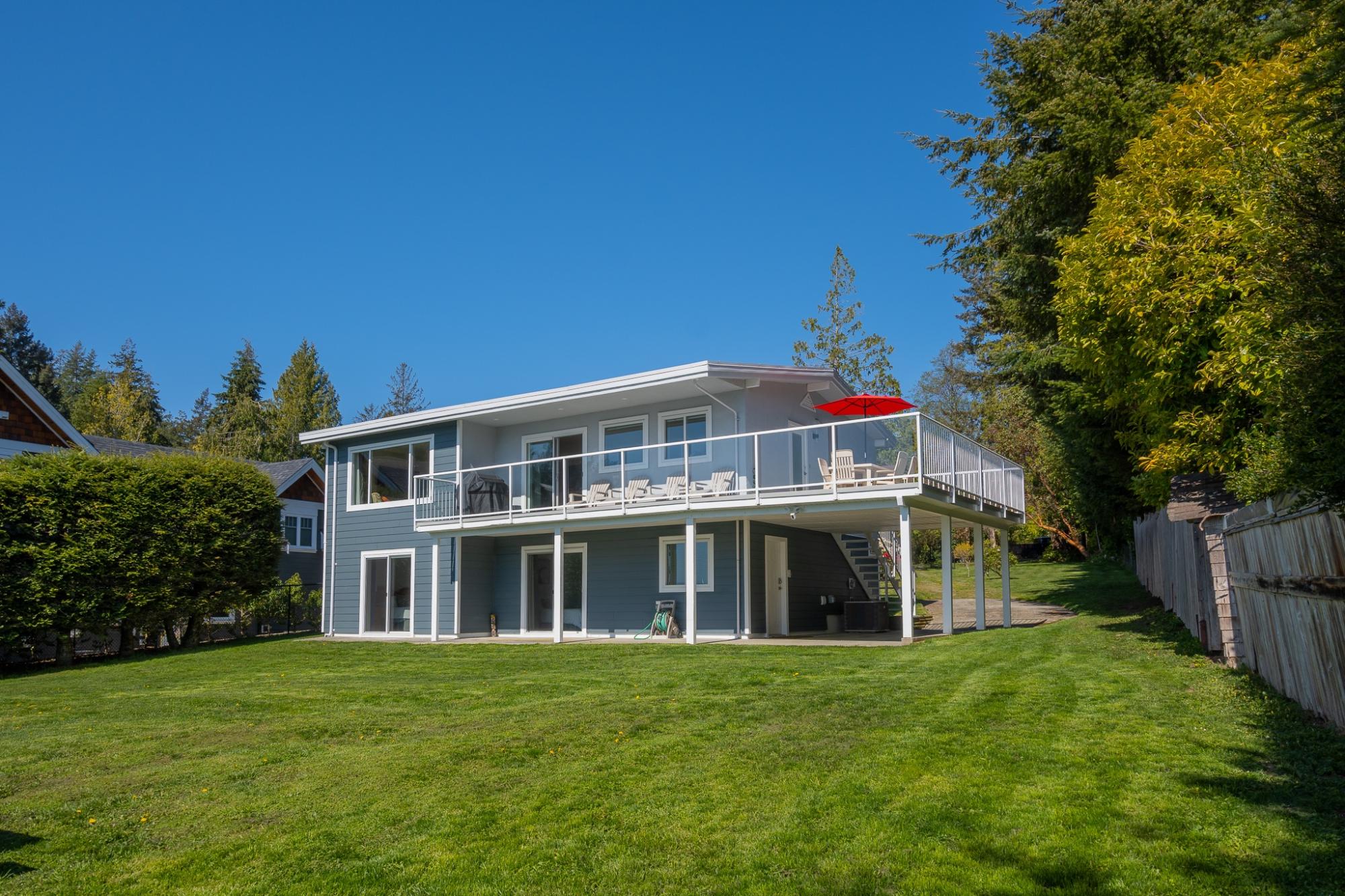WALK-ON WATERFRONT! This waterfront property offers a combination of exceptional home and awe inspiring seaside living. Nestled in Frolander Bay near the Stillwater Bluffs this home enjoys southern exposure and unobstructed views in a protected bay. The gently sloping lot is over 0.5 an acre with 80' of pristine beachfront. This home has been renovated with stunning hardwood floors, new windows and a bright, open plan ideal for your waterfront retreat. The custom kitchen features ceiling-height cabinets, quartz counters and glass tile backsplash with eat-up peninsula and stainless appliances, opening to the wrap-a-round deck, ideal for hosting. The entire living space is open concept and enjoys natural light and ocean views. Main-level-master features stunning ensuite with rain water shower and dual vanity. The home offers 5 bedrooms and 3 bathrooms. The ground floor has 3 spare bedrooms for guests and family. This stunning home is a must see!