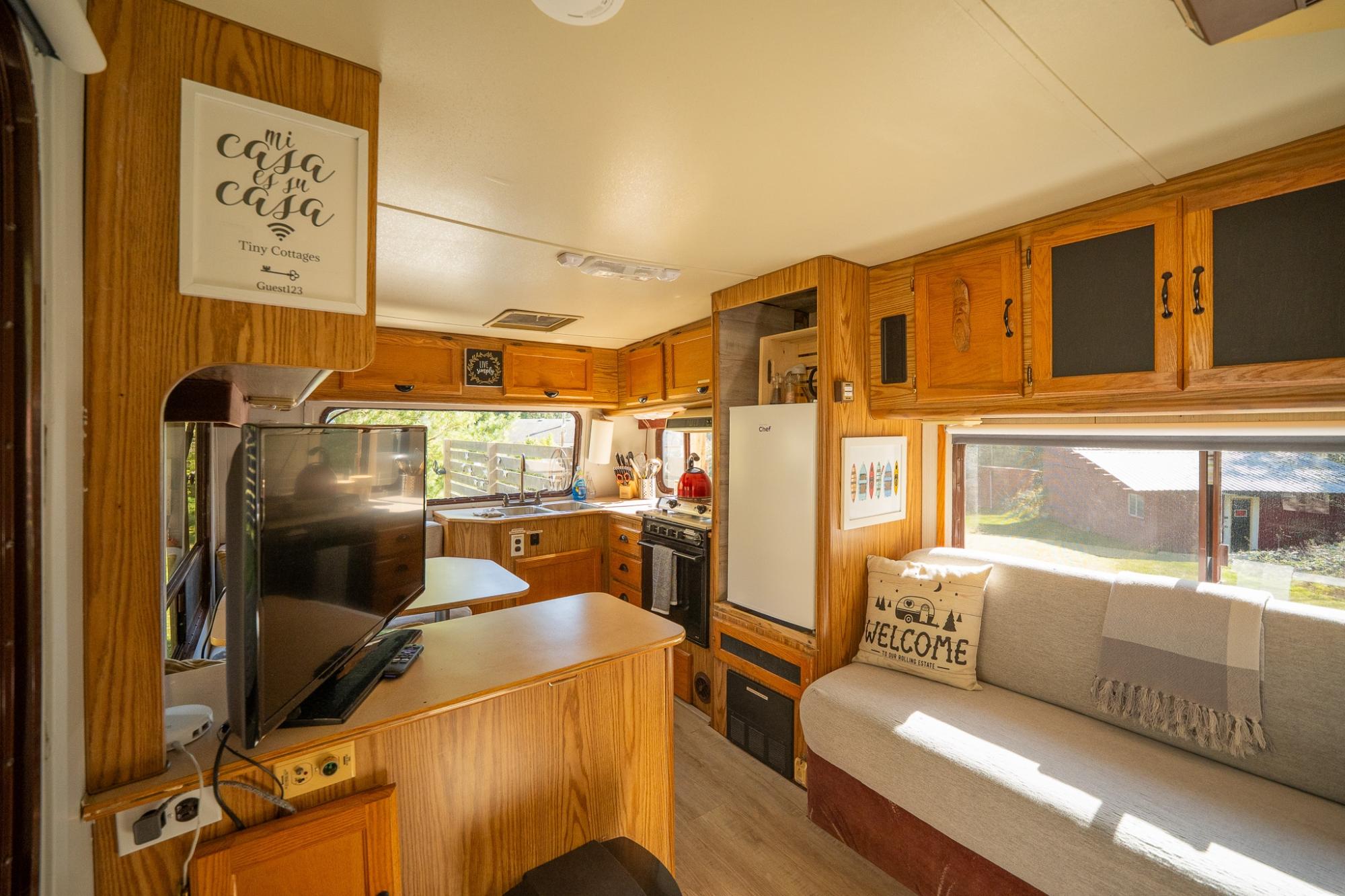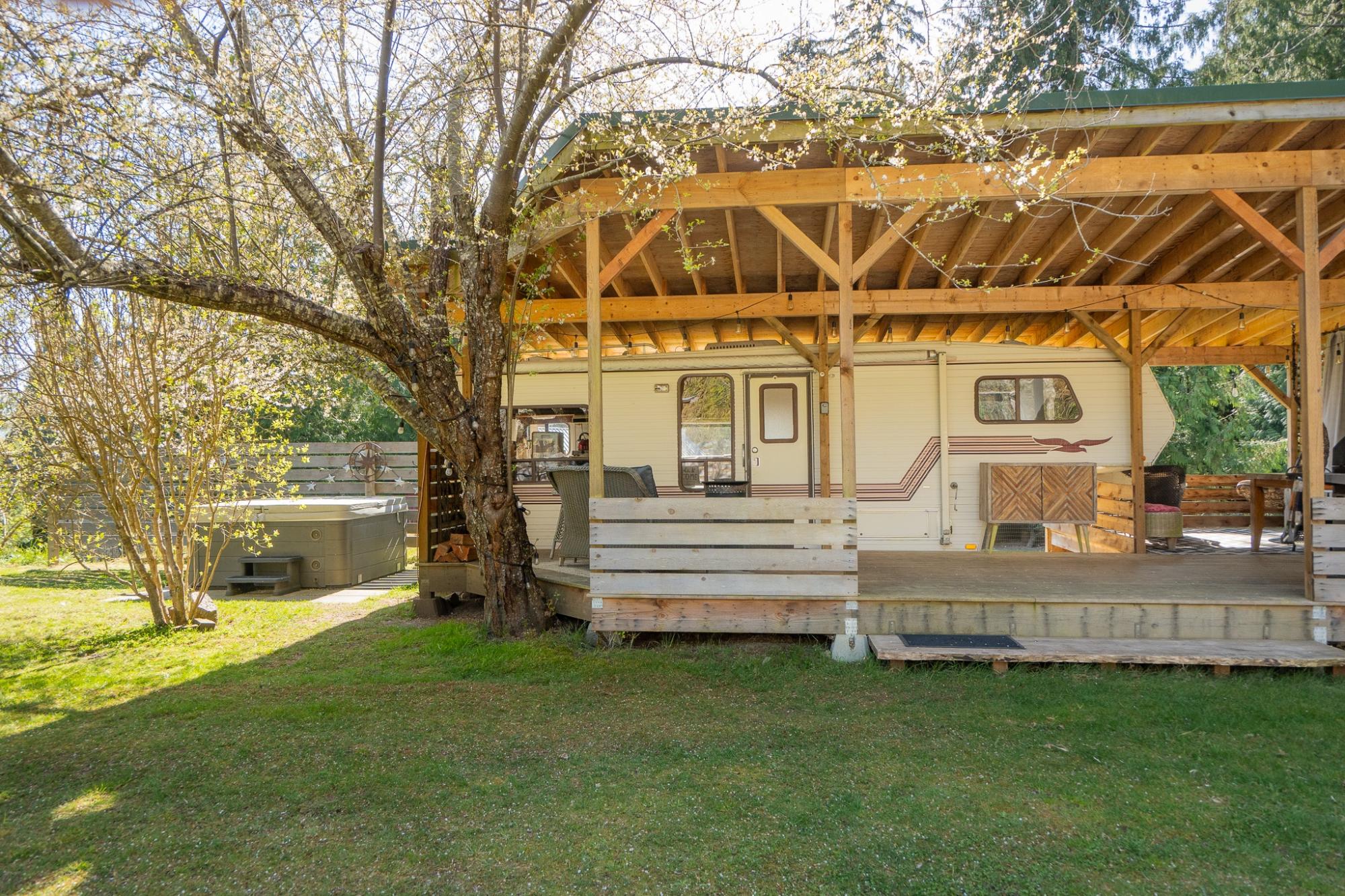 Tucked away on 2.46 acres of peaceful, ocean-view land, this exceptional Stillwater property offers a rare blend of privacy, versatility, and income potential. Surrounded by nature and thoughtfully developed, every corner of the property invites relaxation, recreation, or revenue. The main home features a bright and inviting 2-bedroom, 2-bath upper level, complemented by a fully self-contained 2-bedroom, 1-bath suite below with its own private entrance—ideal for extended family or rental income. Beyond the home, the property opens into a well-designed, multi-use landscape. There are two fully serviced RV sites as well as two unique guest accommodations: a charming tiny cottage retreat, and a creatively designed "glamping trailer" set up! A truly one-of-a-kind property offering lifestyle and income in equal measure—this is a must-see to fully appreciate all it has to offer.