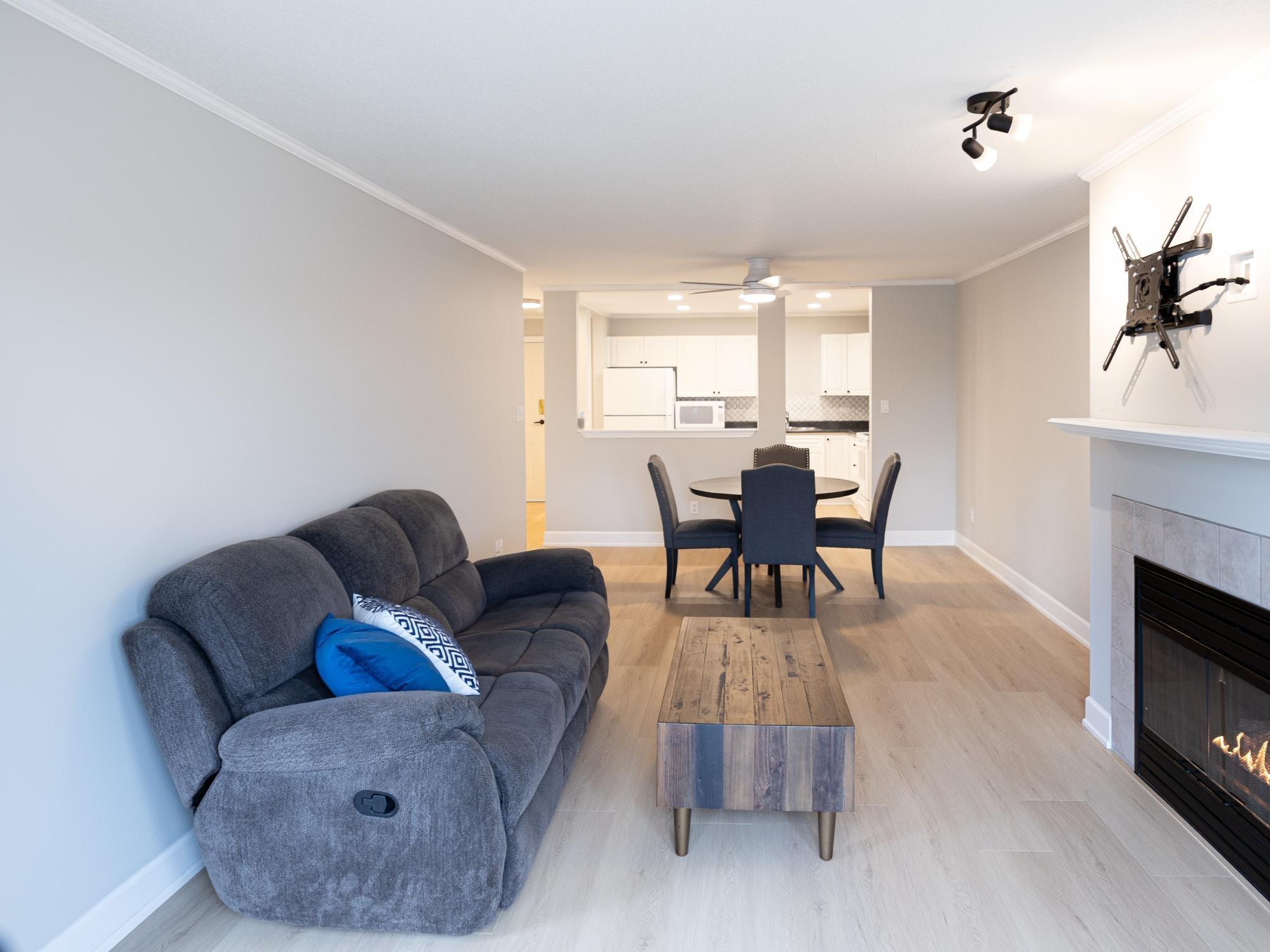 Welcome to Crestview Place. Bright and well updated 2 bed 2 bath condo in a secure, well maintained building. The unit features many recent upgrades including all new flooring, new vanities, new dimmable pot lights, and a new dishwasher. The south facing balcony is ideal for morning coffee, while the living room gas fireplace adds a cozy focal point. The primary bedroom offers a private ensuite and access to the covered balcony. Additional features include in floor radiant heat, elevator access, underground parking, a storage locker, and a landscaped common yard with seasonal flowers. An unbeatable central location close to restaurants, shopping, medical clinics, recreation, and just a few blocks from Willingdon Beach.