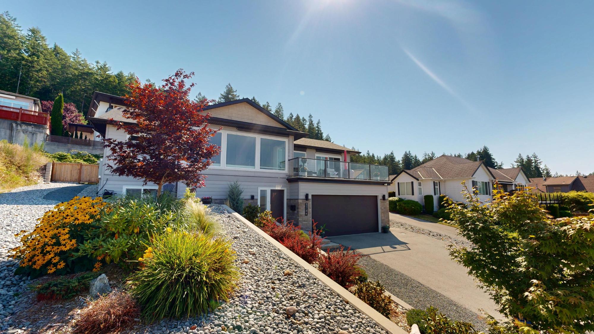 Stunning Oceanview Home on Quiet Cul-de-Sac. This beautifully designed 4-bed, 4-bath home blends luxury, comfort, and panoramic ocean views. Upstairs features two spacious bedrooms with ensuites, including a primary retreat with heated floors, walk-in shower, and soaker tub. The open-concept main level showcases a chef’s kitchen with massive island, gas range, and full stand-up stainless fridge/freezer, flowing seamlessly into the dining and living areas to maximize the view. Locally milled hardwood floors and stairs add warmth throughout. The lower level offers two more bedrooms, a full bath, large rec room, storage, and garage access. Outside, enjoy professional landscaping and a fully fenced backyard, perfect for kids, pets, or relaxing. This home has been fully renovated, with newer roof, windows, heating system, flooring, and much more. Tucked away on a quiet cul-de-sac and steps from Penticton trails, this home truly has it all. Don't miss your chance to call it yours!