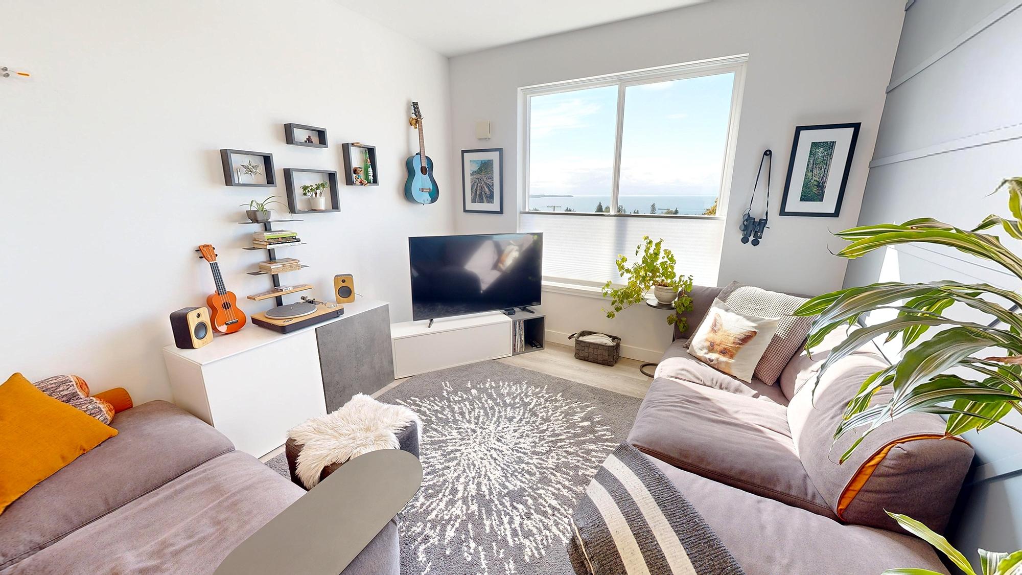 This top floor condo is tastefully decorated and has a spectacular ocean view from the kitchen, living room and spacious deck of the Salish Sea, Texada, Harwood, Savary & Vancouver Islands. Low maintenance home is ready for you to move right in. Stunning living space has 9 ft ceilings, stainless appliances, new heat pump in the kitchen/living room (which means air conditioning in those summer months), plus in-floor heat and up/down blinds throughout. Kitchen and both bathrooms have stone counter tops & the kitchen has a large stone topped island. Smart House upgrades include switches, Nest Smoke/CO detector, Nest doorbell cam and Weiser Smart lock. Gas bbq hook-up on the deck is great for outdoor entertaining. Primary bedroom has a beautiful four piece bath ensuite. Both bathrooms have upgraded mirrors & fixtures while both bedrooms have blackout blinds for a peaceful night’s sleep. Located close to the airport, and not far from the marina and shopping. Call now!