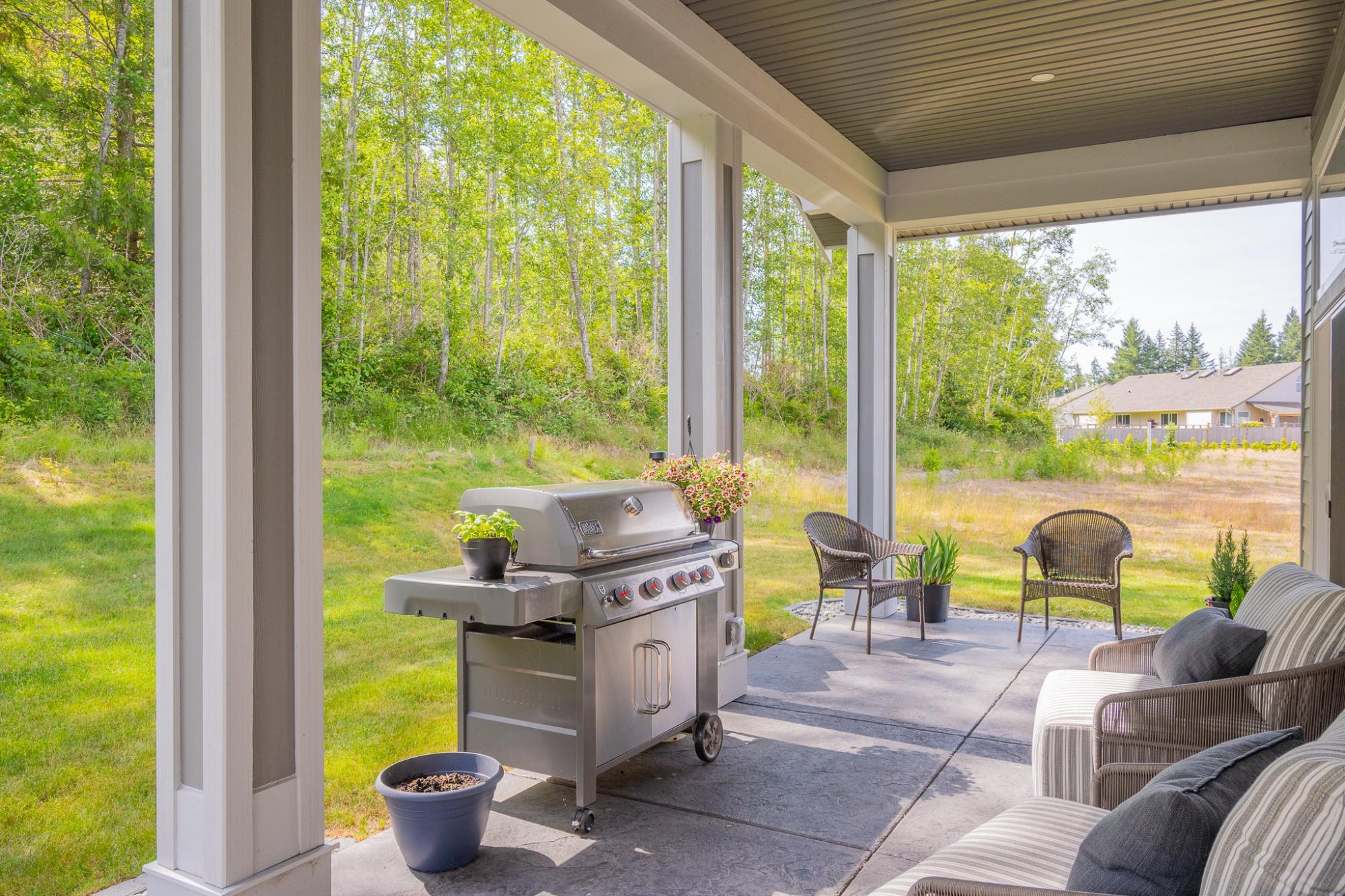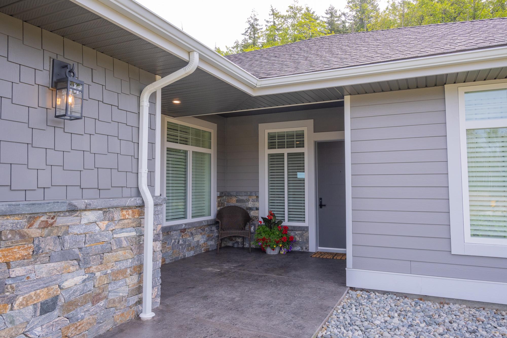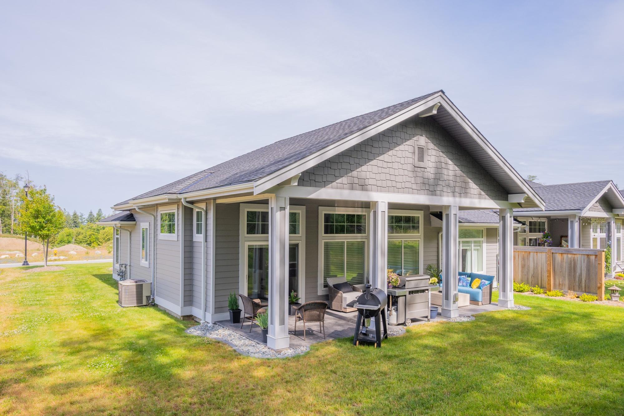 NO GST! Welcome to Westview Heights, an exclusive community in the heart of Westview, where quality and convenience come together in this stunning semi-detached rancher. Designed for easy-care living, this home boasts natural stone accents at the entrance, underground power lines, and an efficient heat pump with AC for year-round comfort. Step inside to an impressive great room and kitchen with 11-foot ceilings and windows that fill the space with natural light. The kitchen features quartz countertops, top-of-the-line appliances, and abundant storage. Gather around the cozy gas fireplace, or enjoy the covered patio, perfect for summer entertaining. The main bedroom is complete with a 4-piece ensuite and walk-in closet. High-quality flooring flows throughout, and an energy-efficient HRV system ensures a comfortable and healthy environment year round.