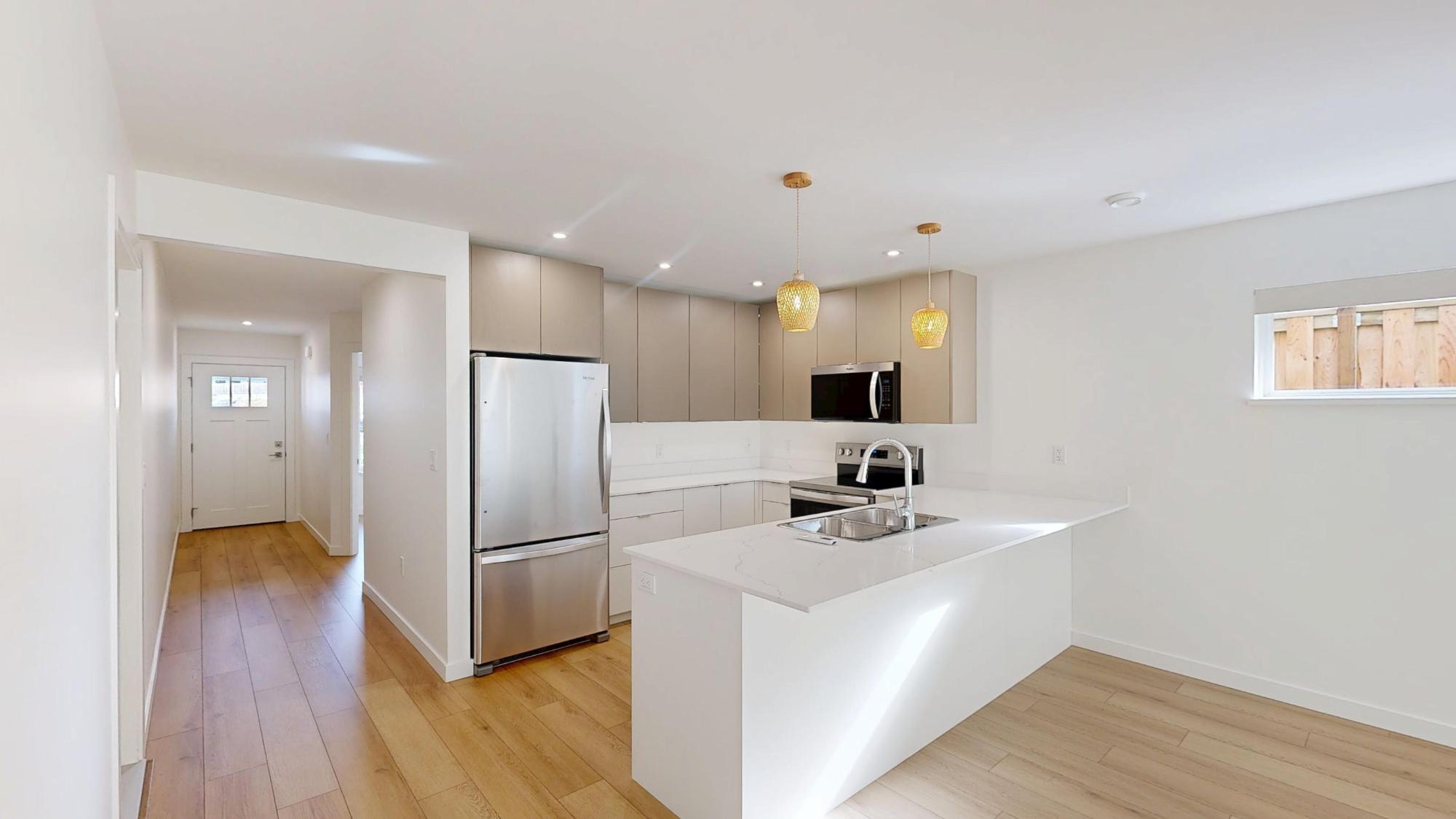 SIMPLIFY YOUR LIFE in this brand new, 2 bedroom, 2 bath rancher. The covered front entrance welcomes you in to a bright home with a clean, simple layout that is a breeze to look after inside & out. The wrap-around kitchen has sleek stainless appliances, lovely pendant lights, and plenty of plug-ins for countertop appliances. Combined living/dining area opens to a patio and fenced yard. The main bedroom features an ensuite bath, walk-in closet, and south facing windows. A second bedroom and 4pc bath are at the front of the house. There’s convenient garage entrance in the hallway, and the efficient ductless heat pump keeps this new home cosy in winter and cool in summer! Great neighbourhood that’s within walking distance to shopping, rec centre, hospital, and many services. Call to take a look at this perfect little home today!