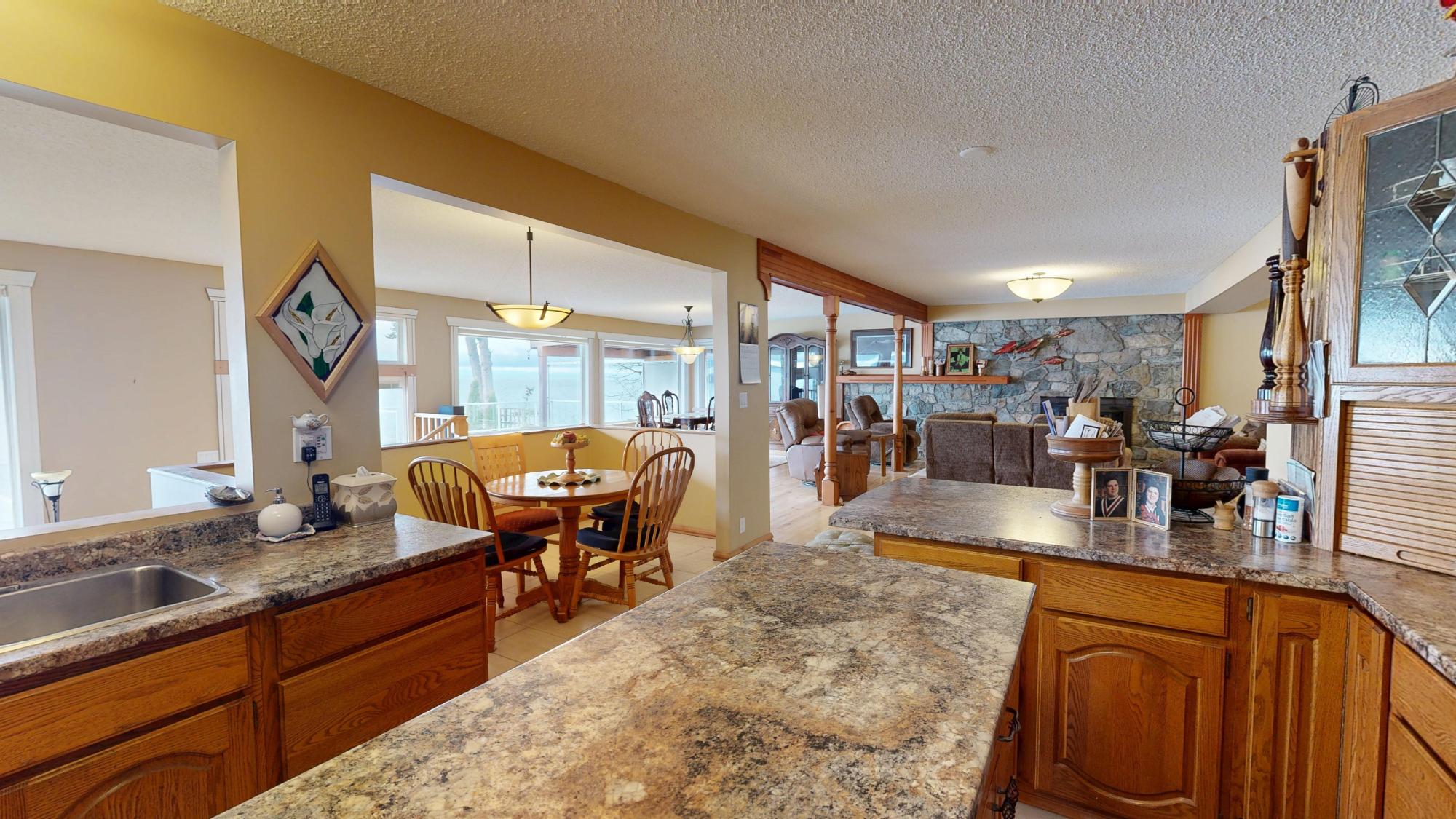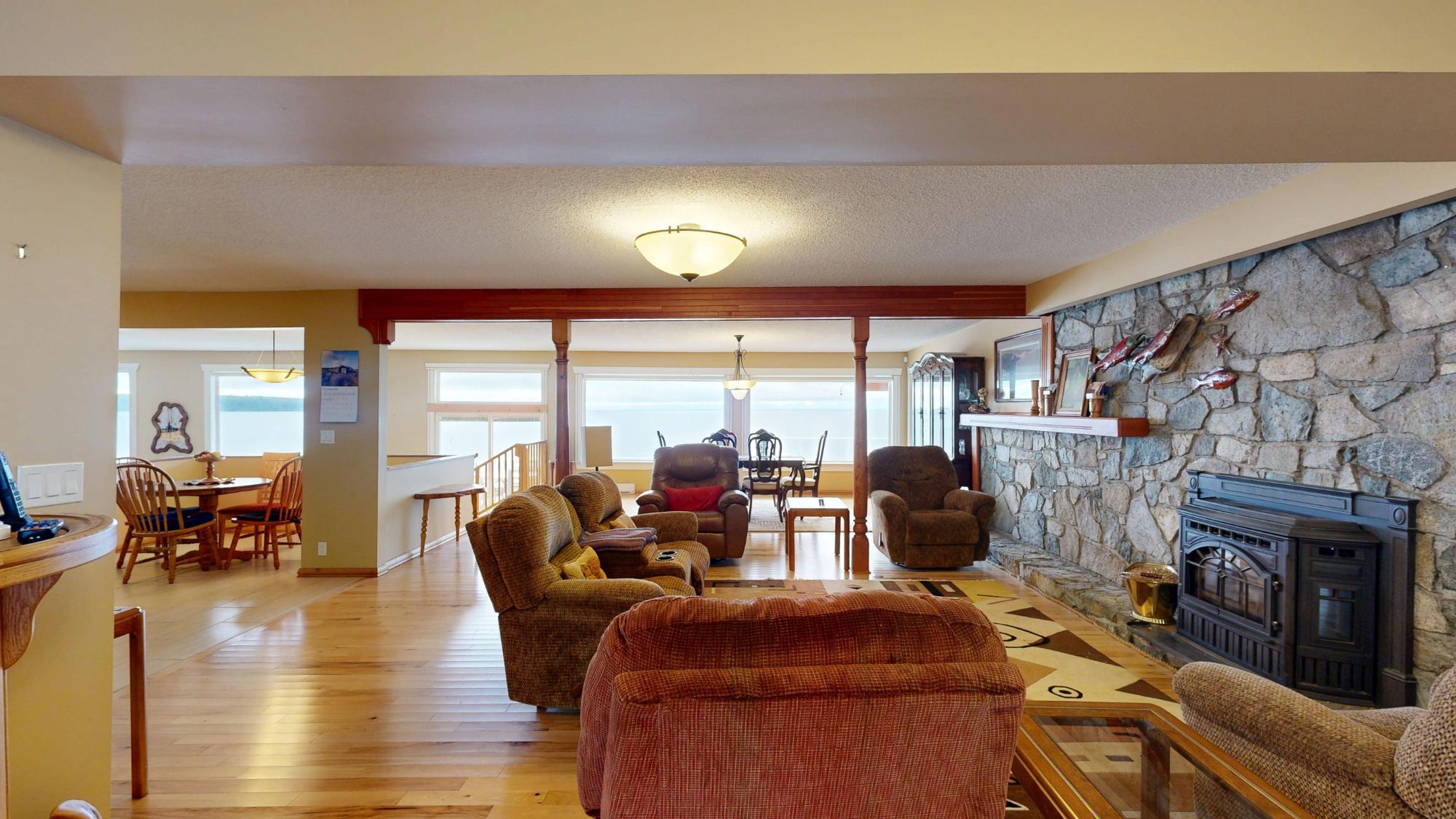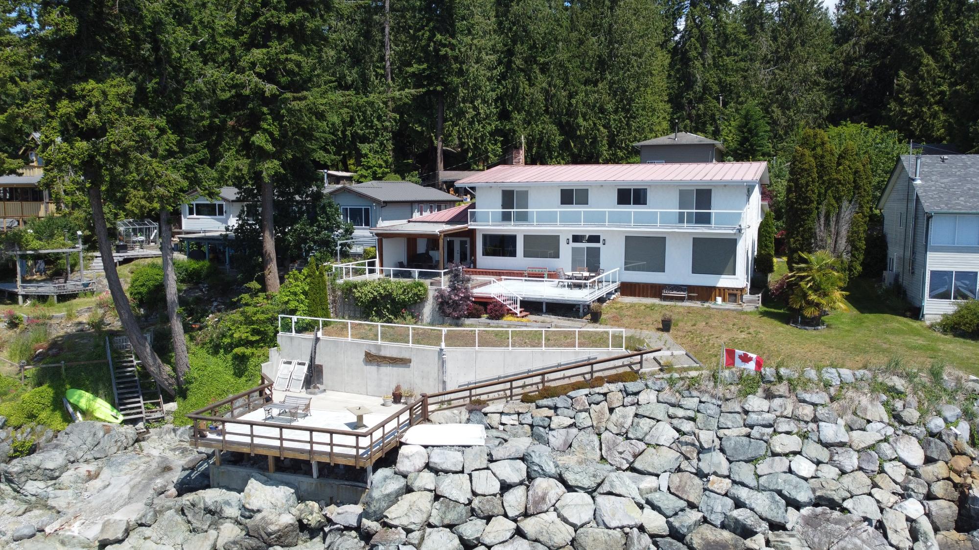 Discover your family's waterfront legacy! This expansive 5-bed, 3-bath home spans 3800 sq ft on 0.45 acres with breathtaking ocean views of Savary & Ahgykson Islands. A standout feature is the massive 24'x40' fully functional shop. It’s equipped with its own power meter, bathroom with water, mezzanine, and professional finishes; perfect for a home business, studio, or ultimate workshop.The main residence offers custom updates, a spacious kitchen, and a large concrete patio for seamless indoor-outdoor entertaining. Two primary-sized bedrooms feature private walk-out decks with panoramic views. Enjoy manicured grounds with concrete garden beds and a custom rock retaining wall providing easy access to the ocean landing. Reliable water and septic systems offer peace of mind. Thoughtfully designed for comfort and utility, this property is ready for its next chapter. Call today for a private viewing!