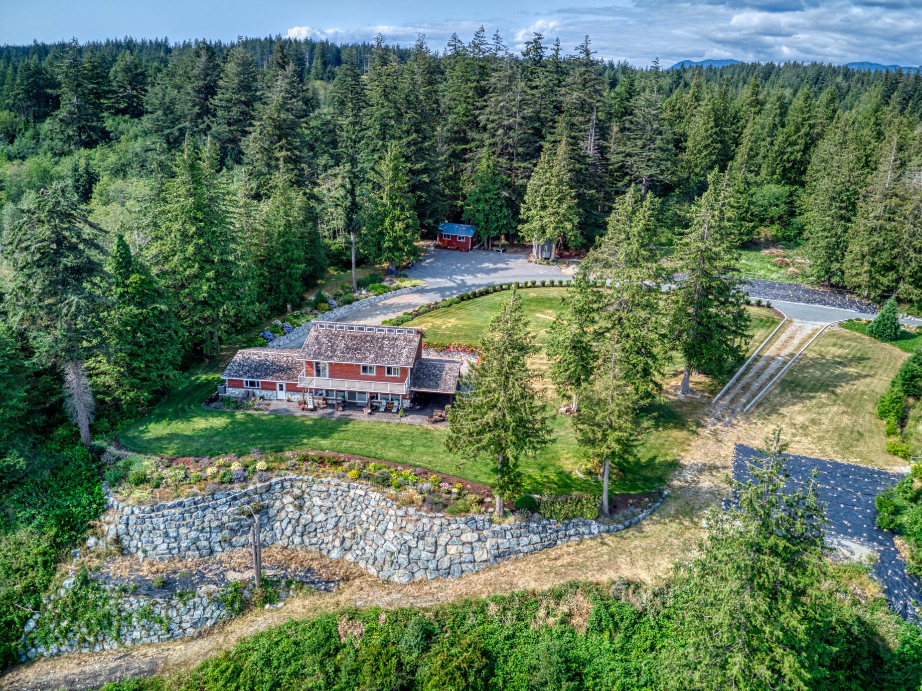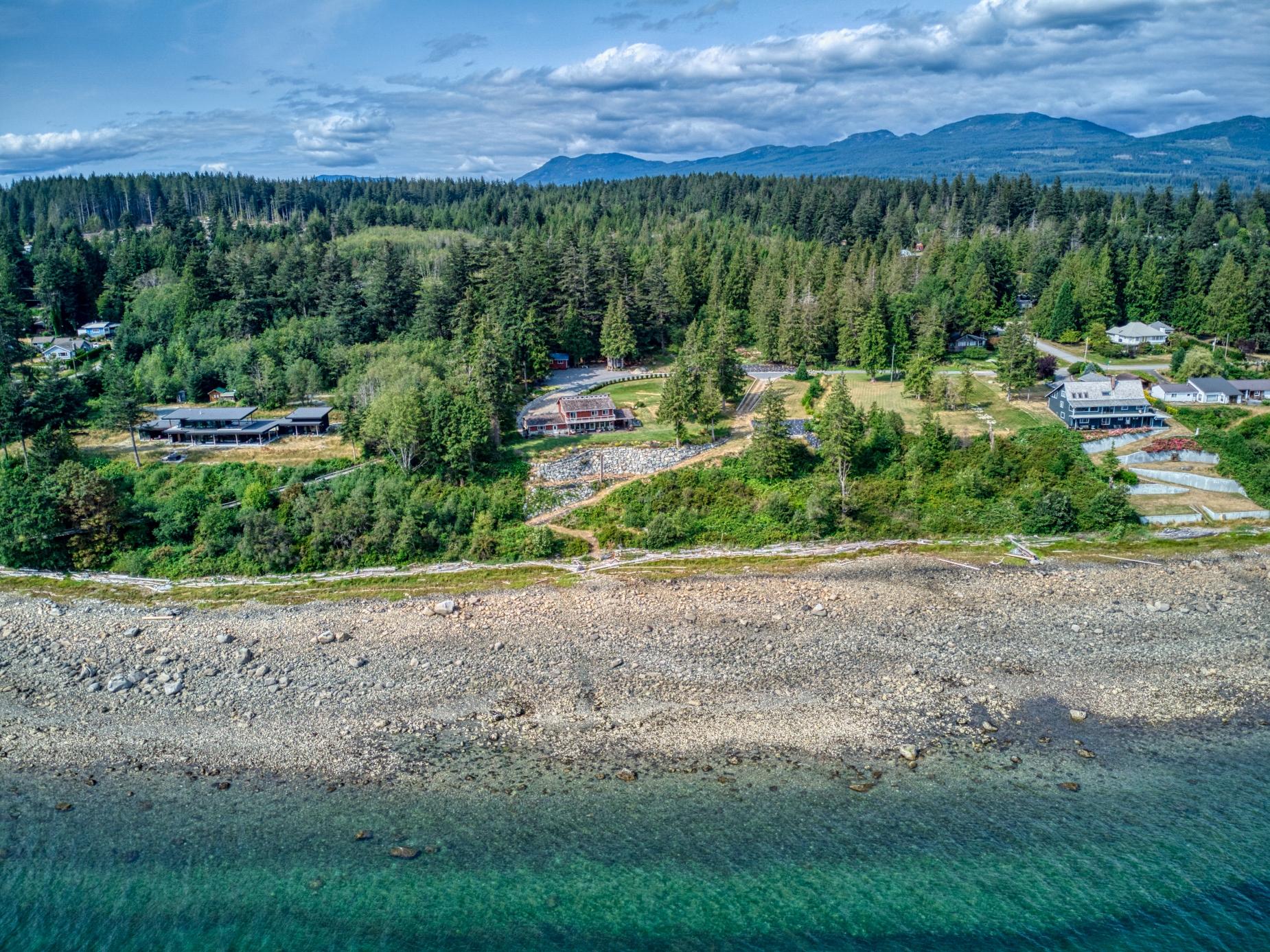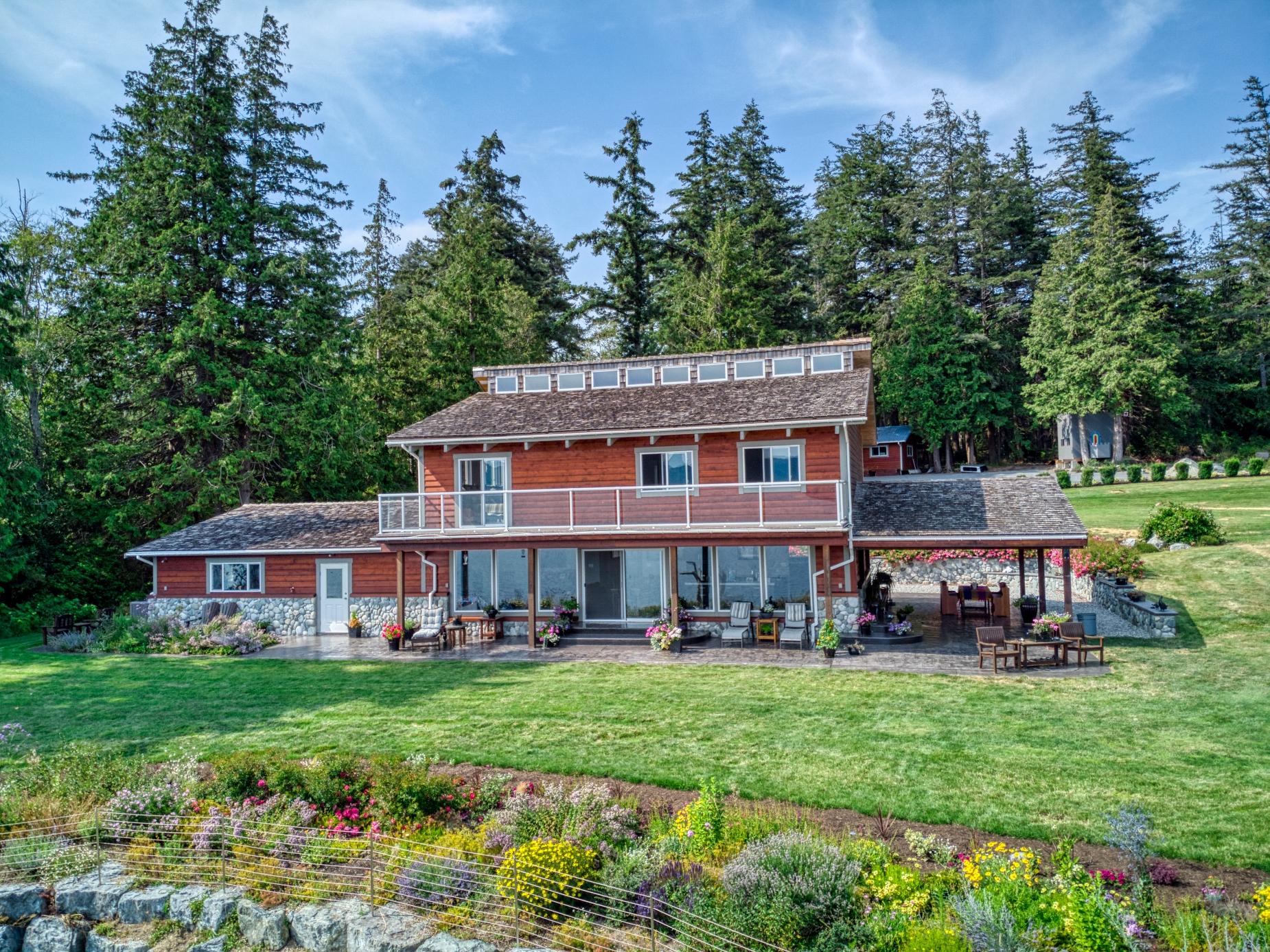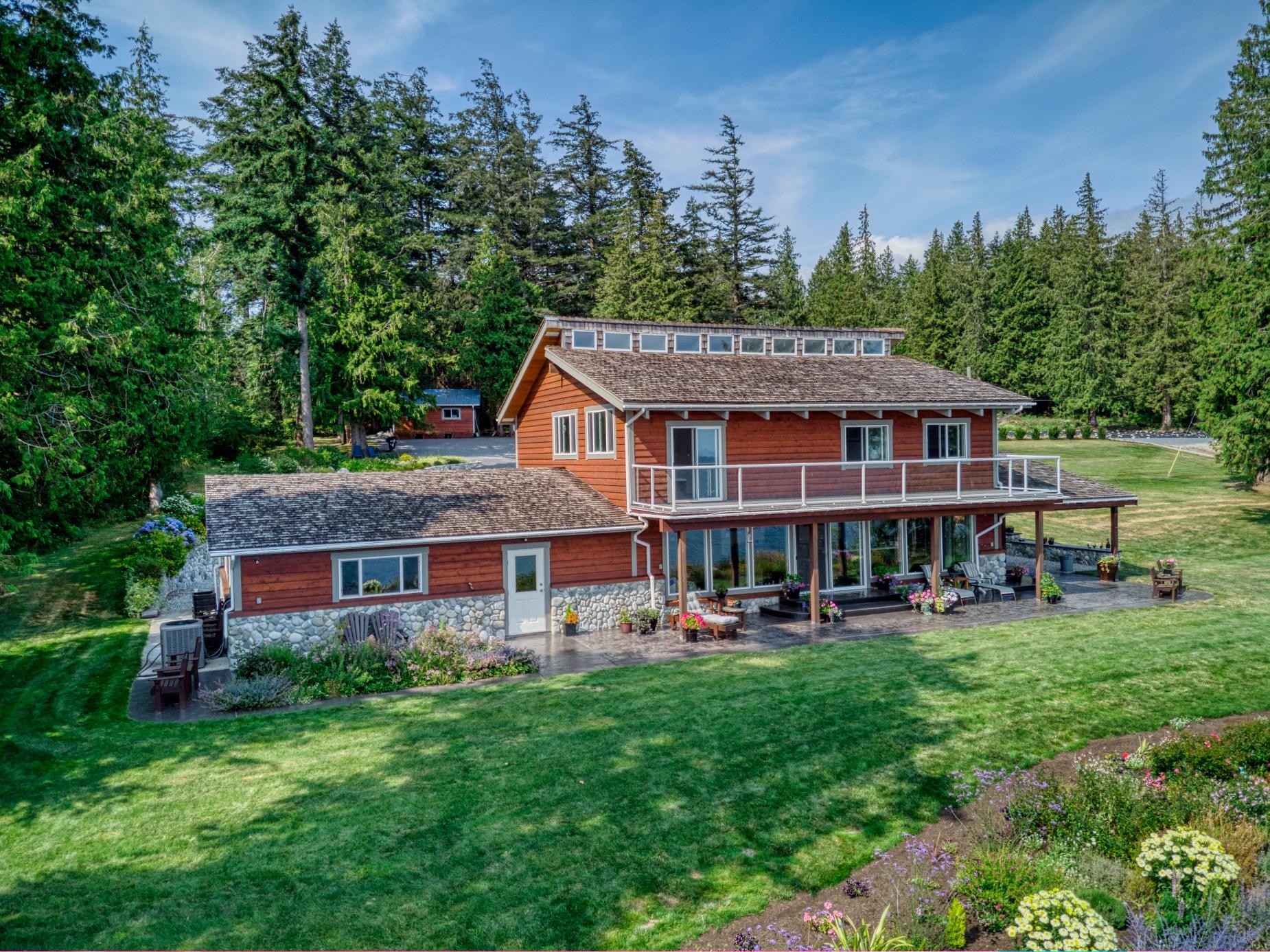 PRIVATE WATERFRONT ON 7.18 ACRES SOUTH OF TOWN. Known for its stunning landscaping, fantastic beach access, quiet location on a no thru road, yet just around the corner from Donkersley Beach. The 4 bed, 3 bath home is designed for both comfort and entertaining. A spectacular wrap-around covered patio sets the stage for outdoor gatherings, inside, floor-to-ceiling windows on the main level bring the views in. A chef’s kitchen featuring a grand island, flowing seamlessly into the cozy dining and family room. The custom staircase brings you up to 4 spacious bedrooms with vaulted ceilings. The luxurious primary suite features a spa-inspired ensuite with soaker tub and walk-in shower plus a private deck with a panoramic ocean views. 3 additional bedrooms share a 5-piece bath. This property offers a double garage, a 16x23 powered workshop and a whimsical kids’ playhouse in the forrest. Waterfront of this size don’t come around often. Take advantage of the lower taxes and rural living!