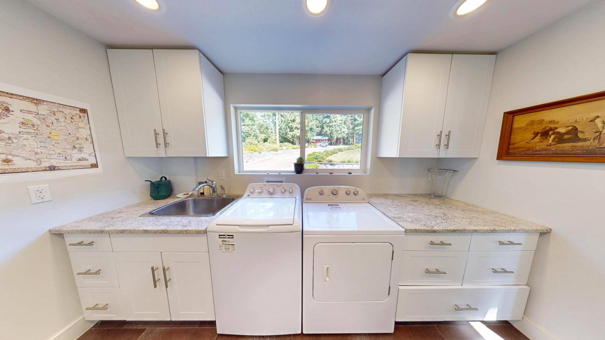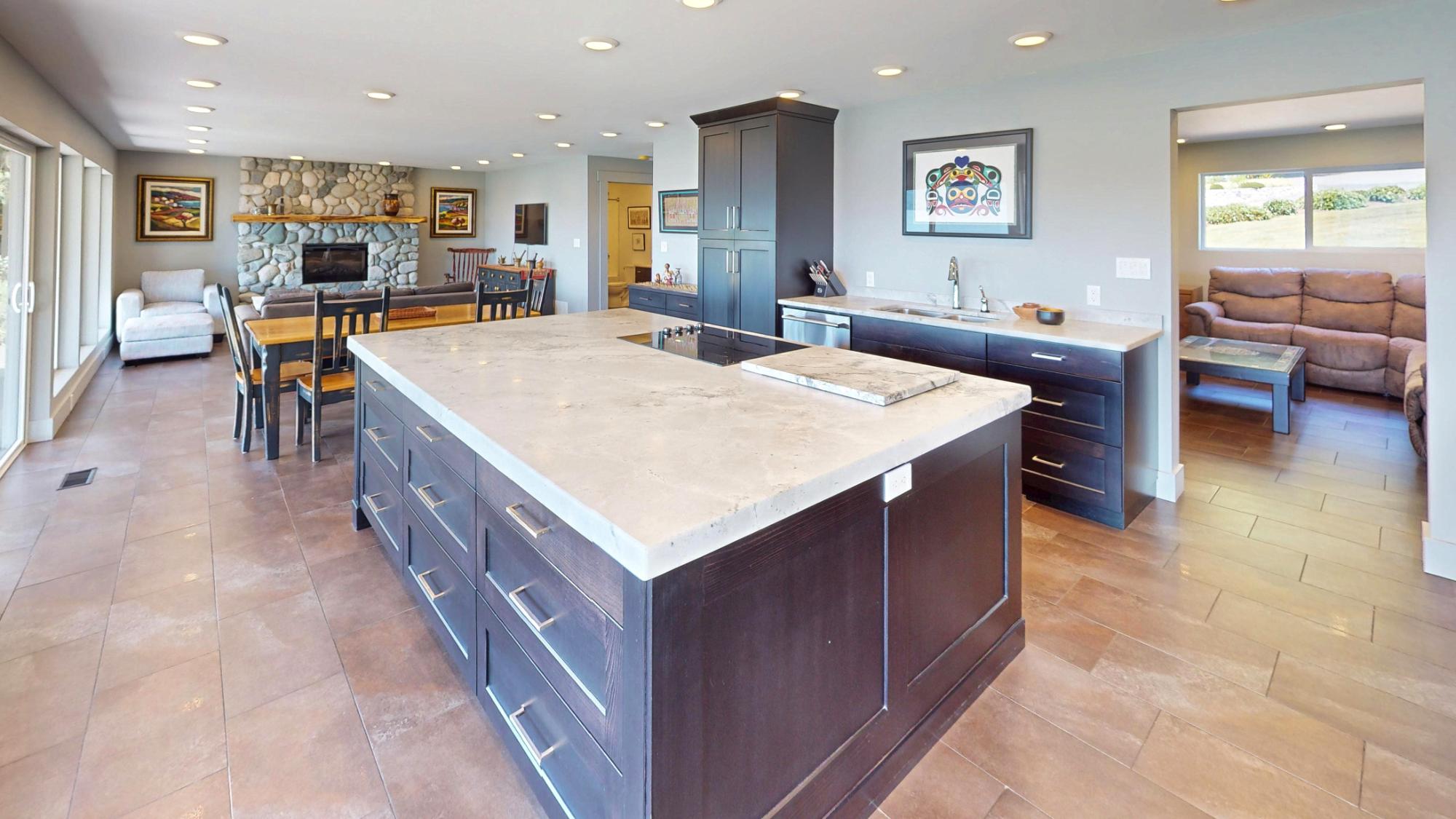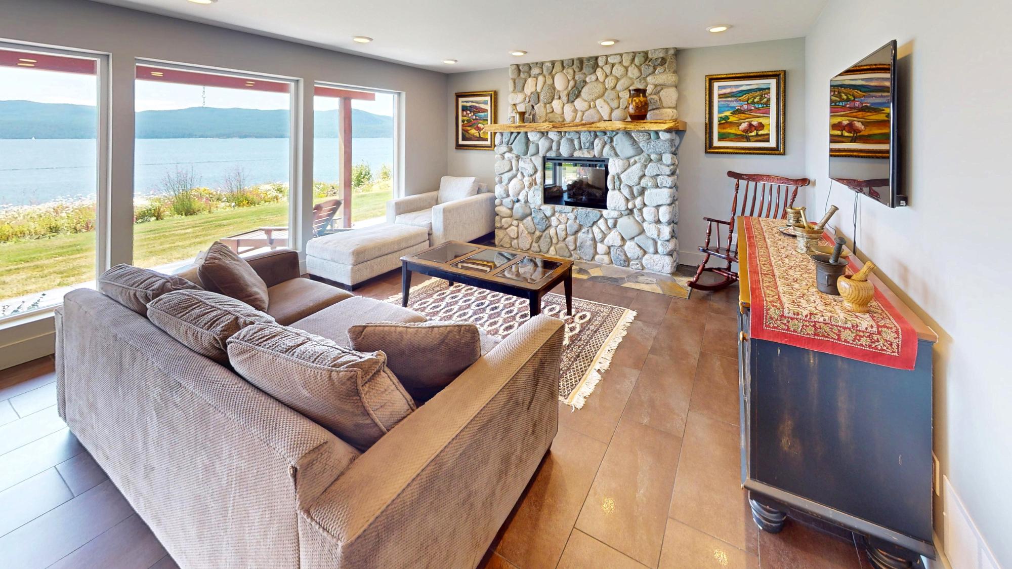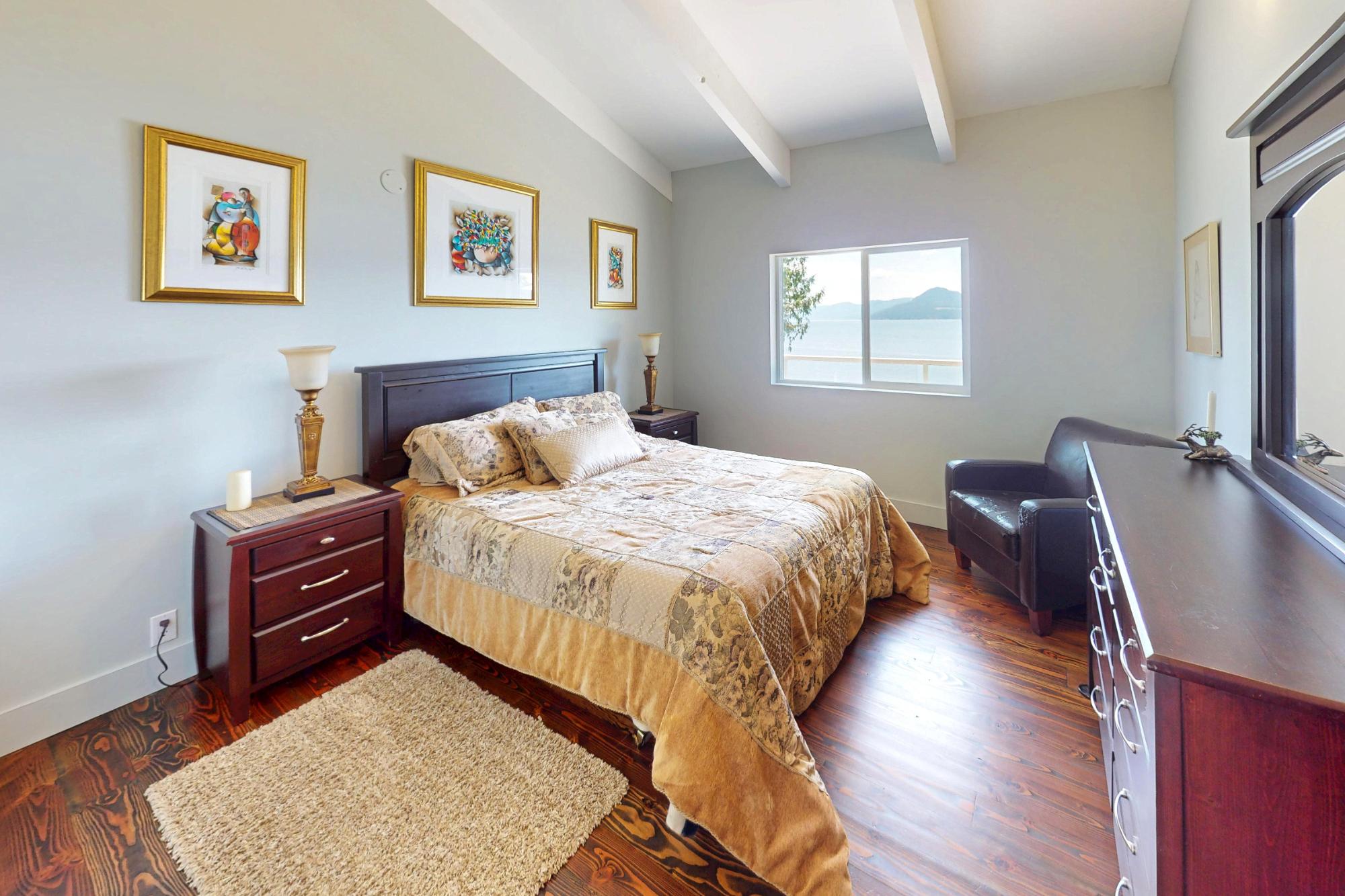 PRIVATE WATERFRONT ON 7.18 ACRES SOUTH OF TOWN. Known for its stunning landscaping, fantastic beach access, quiet location on a no thru road, yet just around the corner from Donkersley Beach. The 4 bed, 3 bath home is designed for both comfort and entertaining. A spectacular wrap-around covered patio sets the stage for outdoor gatherings, inside, floor-to-ceiling windows on the main level bring the views in. A chef’s kitchen featuring a grand island, flowing seamlessly into the cozy dining and family room. The custom staircase brings you up to 4 spacious bedrooms with vaulted ceilings. The luxurious primary suite features a spa-inspired ensuite with soaker tub and walk-in shower plus a private deck with a panoramic ocean views. 3 additional bedrooms share a 5-piece bath. This property offers a double garage, a 16x23 powered workshop and a whimsical kids’ playhouse in the forrest. Waterfront of this size don’t come around often. Take advantage of the lower taxes and rural living!