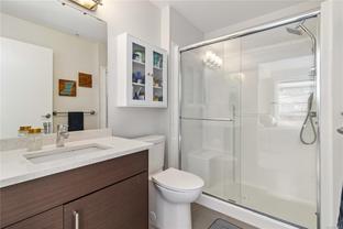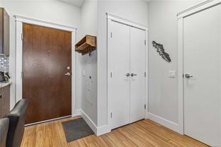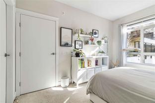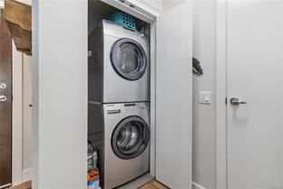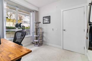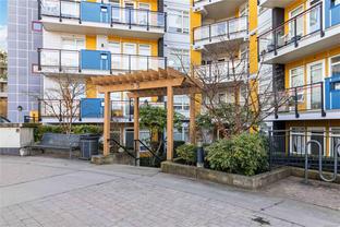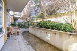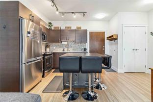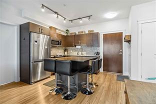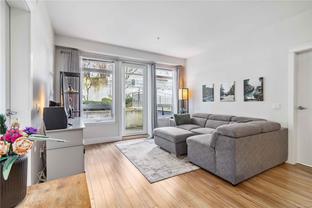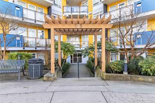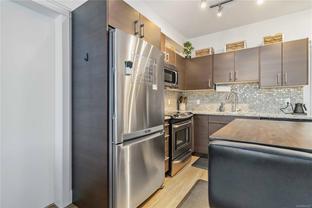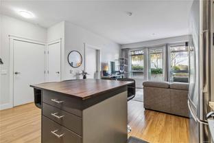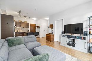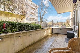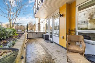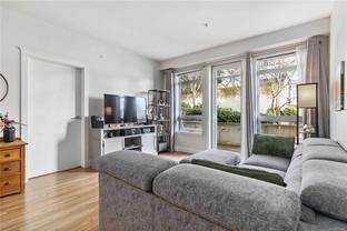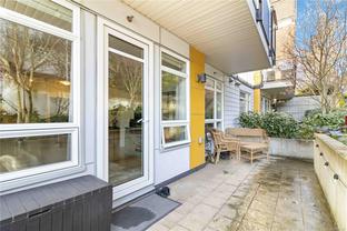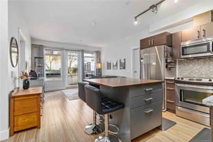 OPEN HOUSE Sat March 22 1030am-Noon. This charming 2-bedroom, 2-bathroom garden-level suite is situated in the award-winning "Midtown Park," offering the comfort of geothermal radiant in-floor heating and hot water, all included in your strata fees! The open-concept living, dining, and kitchen area features a tilt-open door leading to a spacious, southeast-facing patio—perfect for entertaining! The master bedroom includes a 3-piece en-suite and a walk-in closet, while the second bedroom, located at the opposite end of the suite, is next to the 4-piece main bathroom and a laundry closet with a full-size washer and dryer. Additional highlights include Quartz countertops, Chefs island, an underground parking spot, and separate storage. The building also features a café on the entry level, bike storage, ample visitor parking, and beautifully landscaped grounds, all just across from Rutledge Park! Pets and rentals are welcome, and you're close to all amenities!