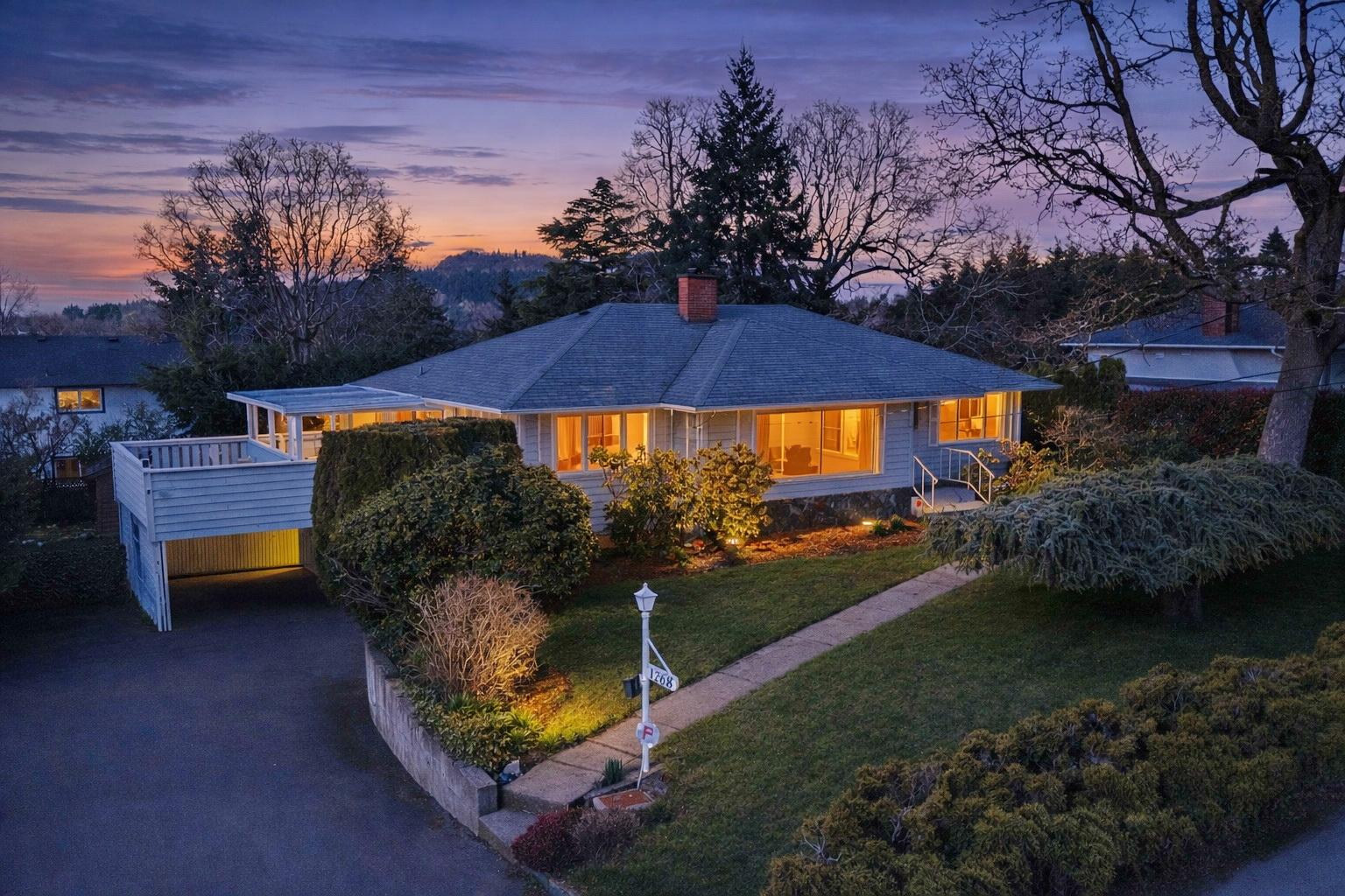 **OPEN SATURDAY 1-3pm** TURN-KEY SAANICH BUNGALOW ON LARGE LOT WITH SUITE POTENTIAL. Experience timeless elegance in this bright, meticulously maintained 60’s home where SUN-DRENCHED ROOMS, COVED CEILINGS, and REFINISHED OAK HARDWOODS greet you. The RANCHER style main level features an UPDATED KITCHEN with pantry, 3 bedrooms, UPDATED 4PC BATH with soaker tub, living room with propane FIREPLACE, and an inviting dining area. The kitchen opens to a LARGE DECK with ENCLOSED SUNROOM off back. The WALKOUT LOWER LEVEL includes a 4th bedroom, 3PC BATH, laundry room, mechanical room and recreation room, ready for an in-law suite. Vinyl windows throughout. Large yard with mature plantings and full fencing at back. Parking includes a SINGLE GARAGE, DOUBLE CARPORT and gate for RV/boat parking. Near THE ROOT CELLAR, BRAEFOOT ELEMENTARY, and transit for easy UVIC or downtown access. Move in and enjoy flexible single-level living with incredible income potential! Natural gas at the lot line.
