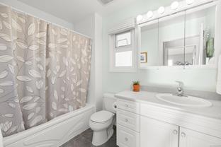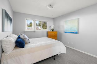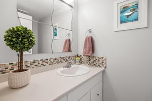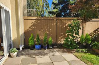 Park on Nelthorpe, walk through the gate. Welcome to this centrally located, 3 bed/3 bath townhome which has a private fenced patio in front and walkout downstairs to a sunny-south facing fenced backyard. This well-maintained home has a new roof and perimeter drains. It is across the street from the Swan Lake trails and within short cycling distance to the galloping goose trail, a quick drive to Uptown Mall, the highway and 20 minutes to the airport or downtown. Walk from your carport parking through the private patio to the main level where there is a powder room, an updated kitchen with pass-through to the dining room and spacious living room, and big picture windows overlooking the nature sanctuary. Upstairs are 3 large bedrooms, and a 4-piece bathroom. Downstairs is a rec/flex room with a 3-piece bathroom, laundry and walk-out to the south-facing, fenced garden patio. Two parking spaces are allocated to this unit which is in a quiet neighborhood.